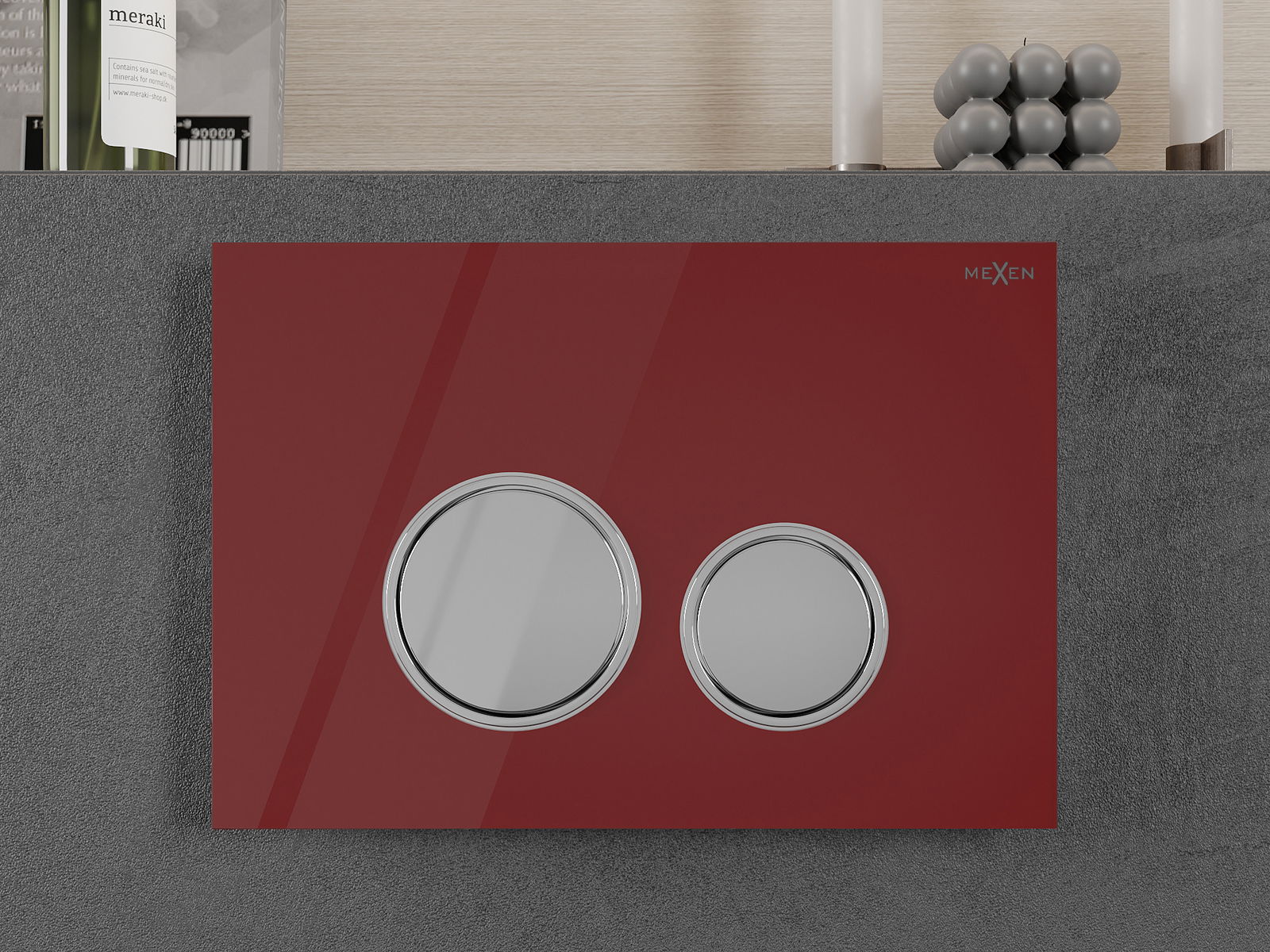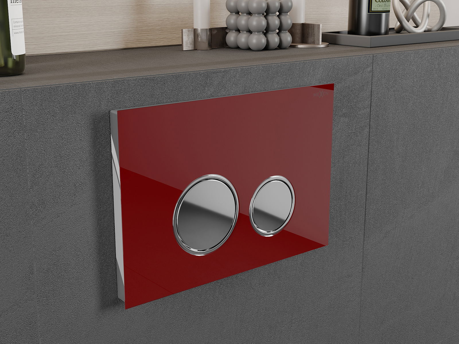 Gumb je namenjen za nadometne okvirje, kjer je mesto montaže na sprednji strani konstrukcije. Takšna postavitev omogoča enostaven dostop in udobno upravljanje splakovanja.