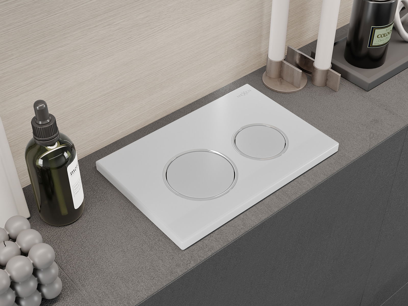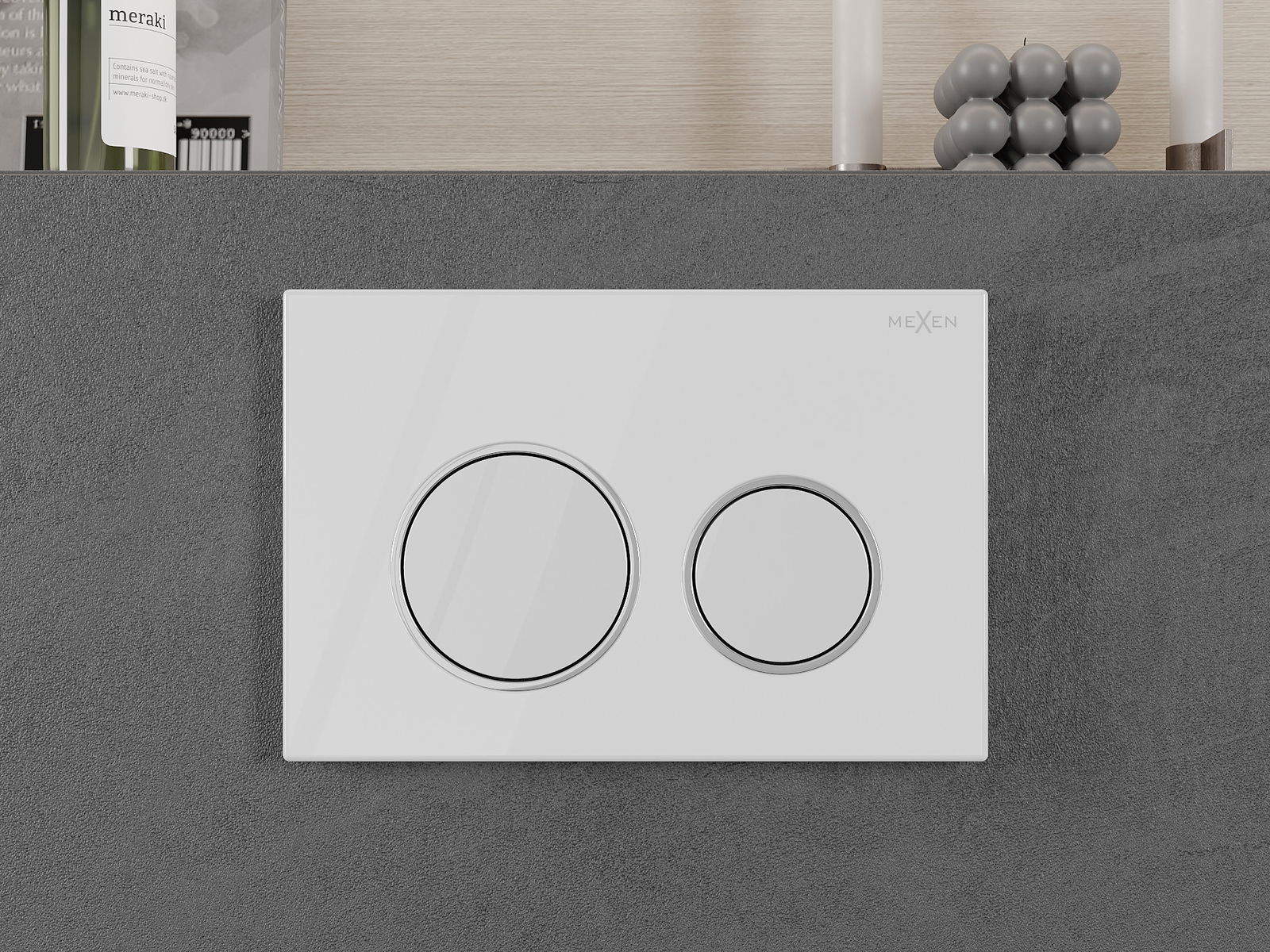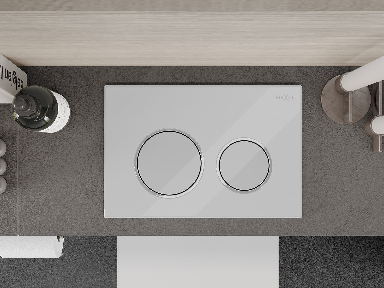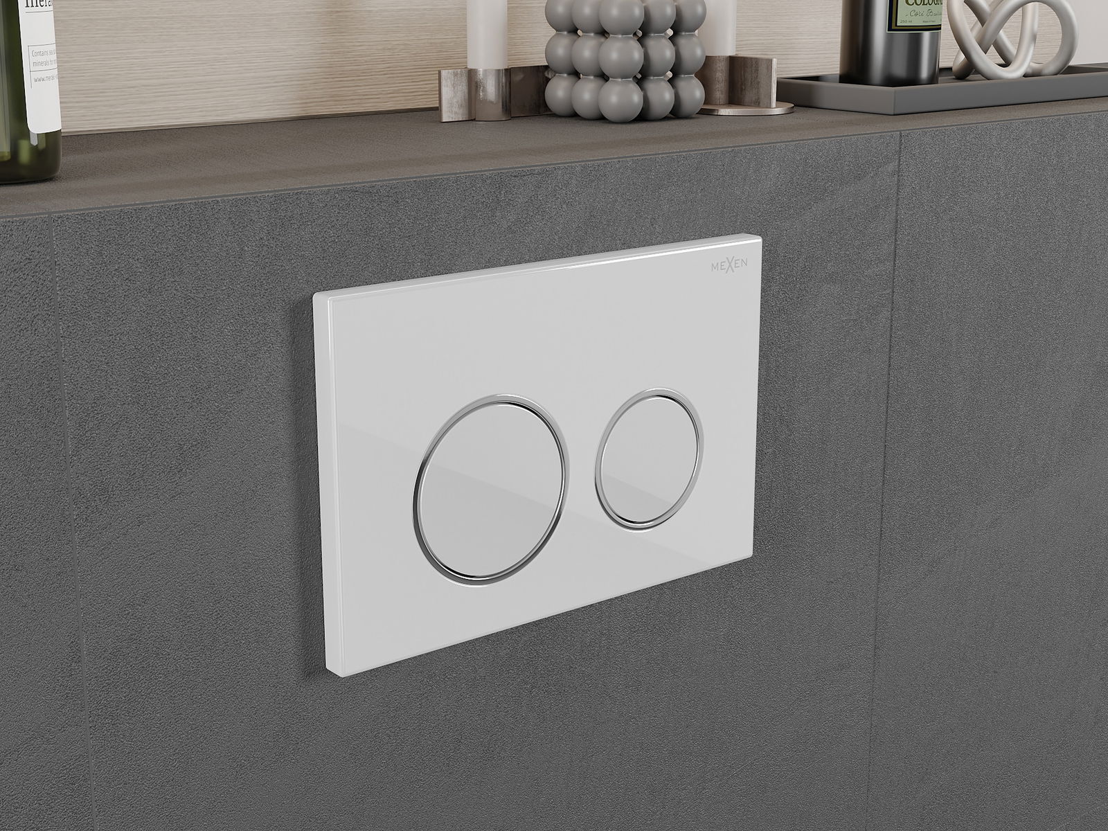 Gumb je namenjen za okvirje Mexen iz serije XS. Lahko je nameščen tako od spredaj kot od zgoraj na okvirju, kar povečuje njegovo univerzalnost. Takšna rešitev olajša namestitev v različnih montažnih pogojih. Zahvaljujoč temu je upravljanje splakovanja udobno in intuitivno.