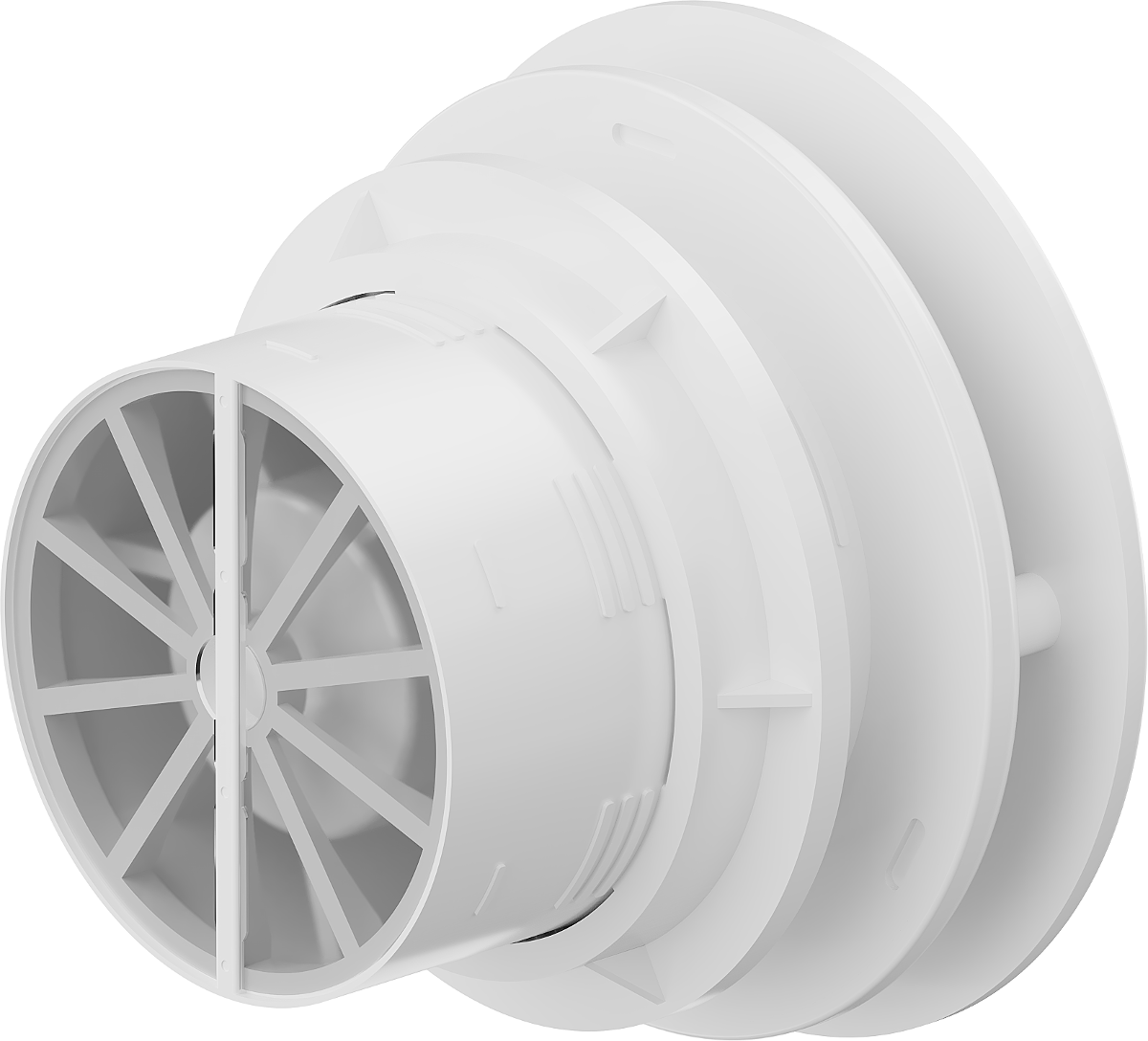Naprava je opremljena z mehanizmom, ki preprečuje vračanje zraka nazaj v prostor po izklopu ventilatorja. Še posebej uporabno v kopalnicah, kjer lahko preprečitev neželenega pretoka zraka izboljša udobje in higieno.