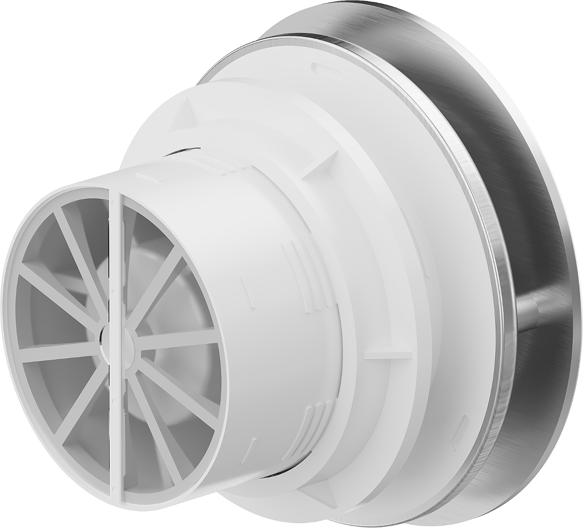 Naprava je opremljena z mehanizmom, ki preprečuje vračanje zraka nazaj v prostor po izklopu ventilatorja. Še posebej uporabno v kopalnicah, kjer lahko preprečitev neželenega pretoka zraka izboljša udobje in higieno.
