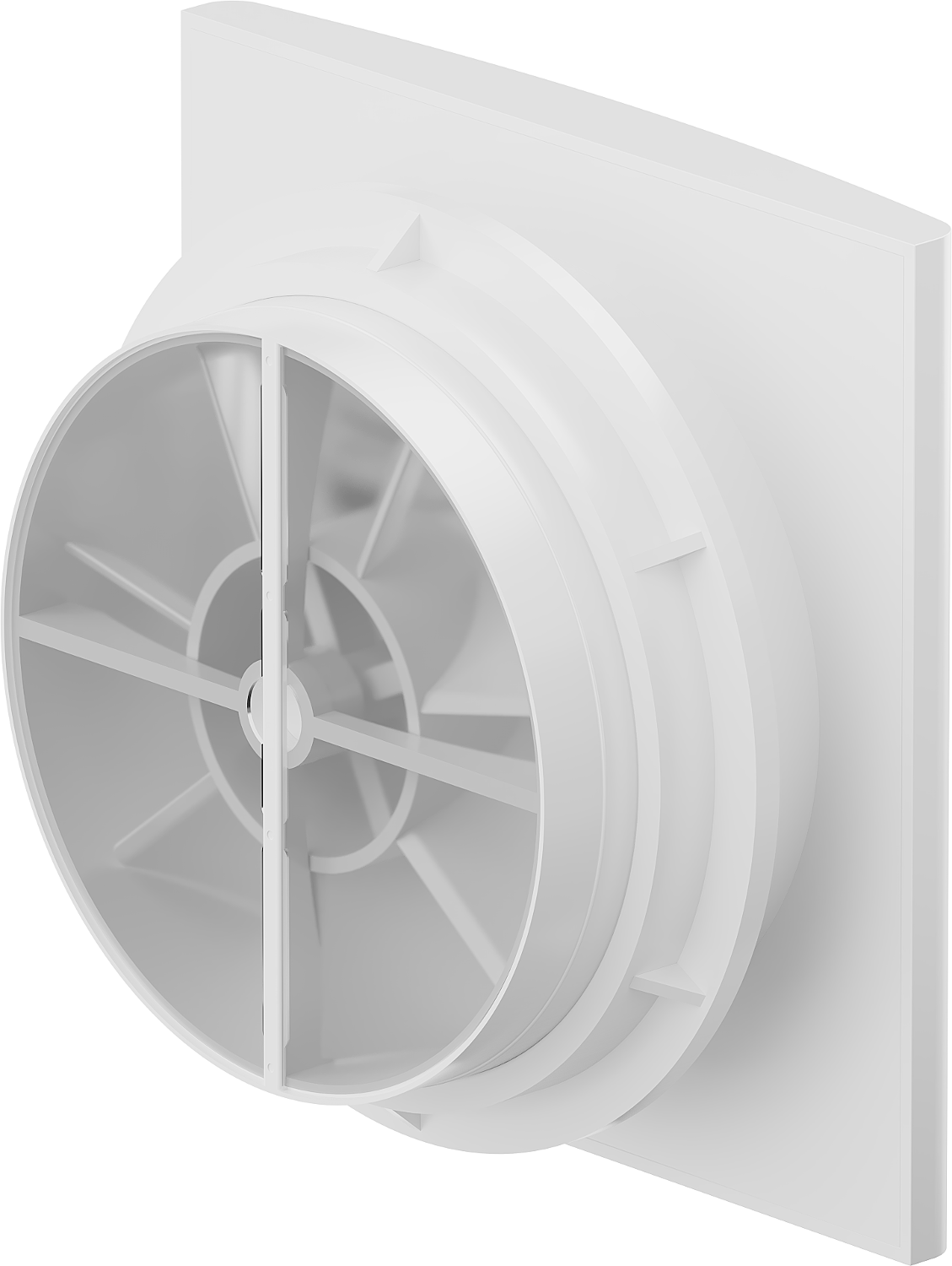 Naprava je opremljena z mehanizmom, ki preprečuje vračanje zraka nazaj v prostor po izklopu ventilatorja. Še posebej uporabno v kopalnicah, kjer lahko preprečitev neželenega pretoka zraka izboljša udobje in higieno.