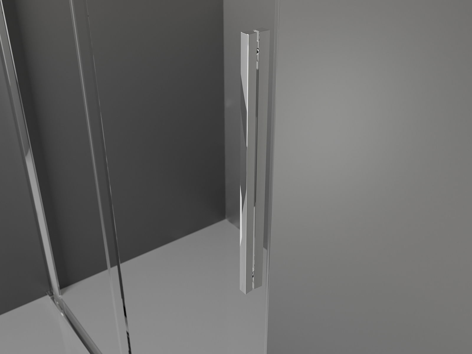 Priročen in udoben ročaj je izdelan iz nerjavečega jekla. Modna oblika v kombinaciji s končno obdelavo, ki ustreza barvi profilov, daje celoti moderen in stiliziran videz ter poudarja estetiko vsake kopalnice.