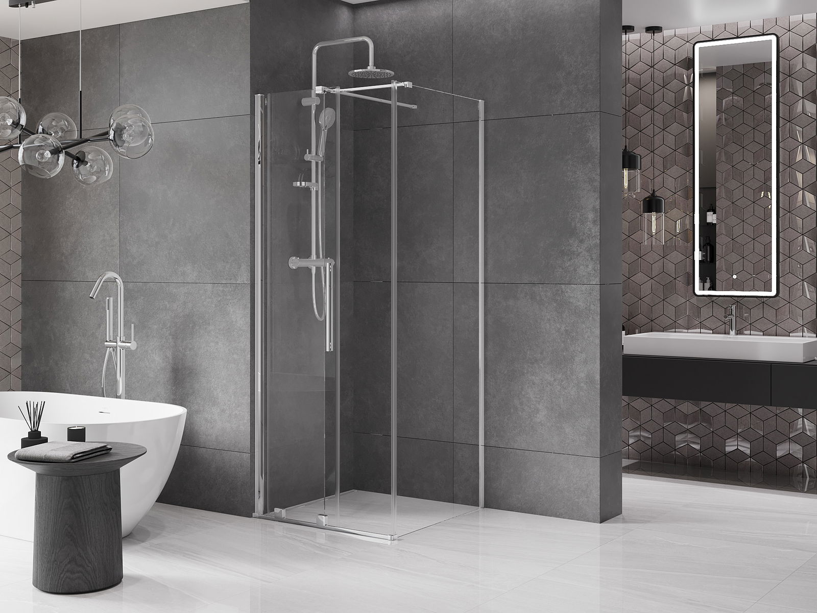 Zahvaljujoč uporabi univerzalnega sistema montaže je mogoče pršne vrata namestiti na desni ali levi strani, odvisno od potreb. Zahvaljujoč temu lahko z lahkoto oblikujete prho, prilagojeno prostoru v kopalnici.