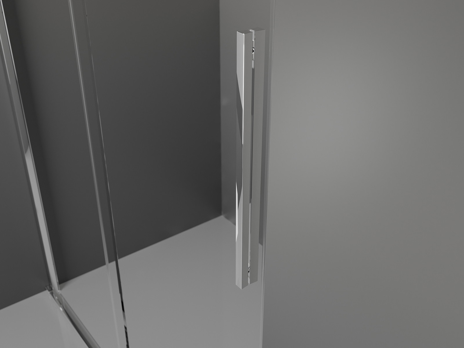 Priročen in udoben ročaj je izdelan iz nerjavečega jekla. Modna oblika v kombinaciji s končno obdelavo, ki ustreza barvi profilov, daje celoti moderen in stiliziran videz ter poudarja estetiko vsake kopalnice.