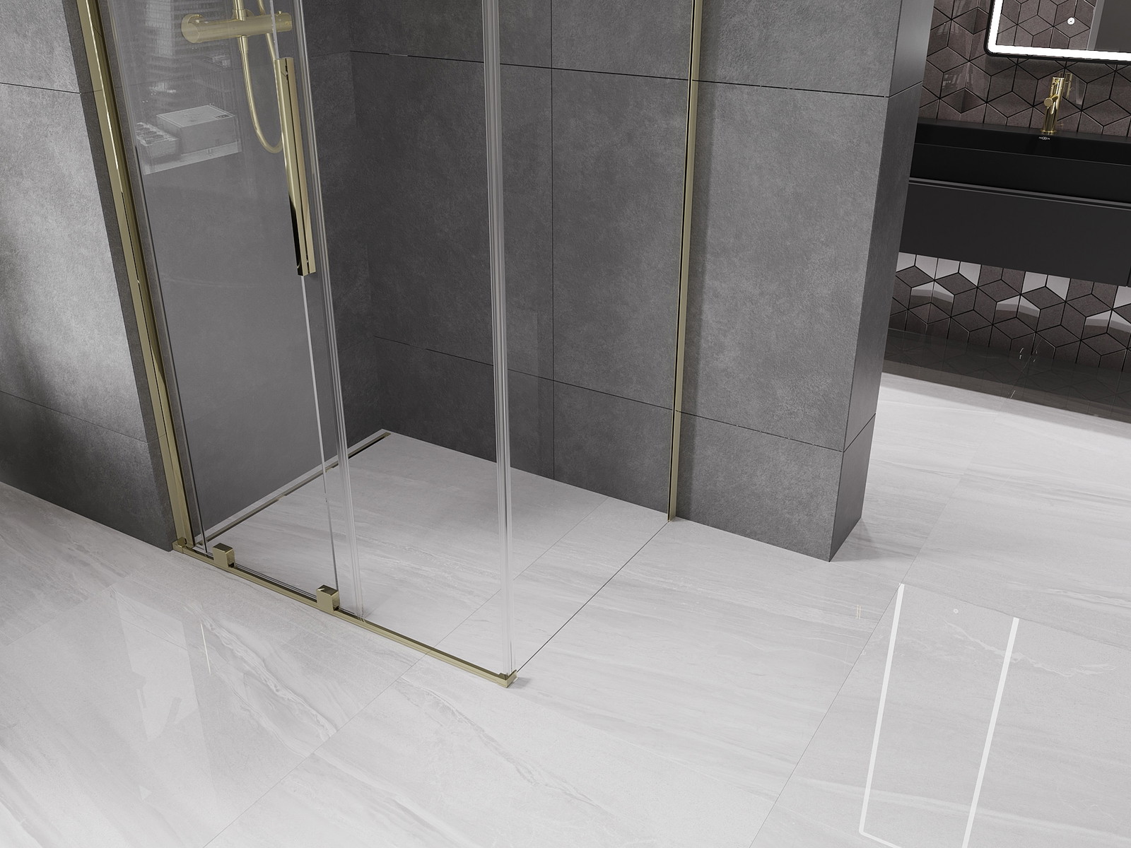 Mexen Velar drsna pršna kabina 90 x 110 cm, prozorna, zlata - 871-090-110-01-50