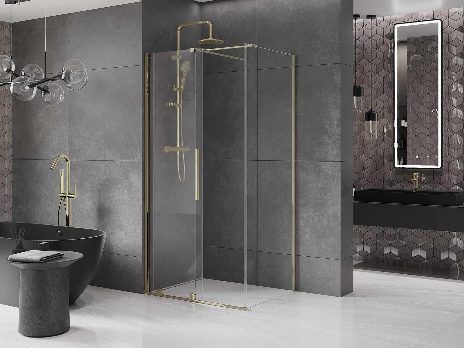 Zahvaljujoč uporabi univerzalnega sistema montaže je mogoče pršne vrata namestiti na desni ali levi strani, odvisno od potreb. Zahvaljujoč temu lahko z lahkoto oblikujete prho, prilagojeno prostoru v kopalnici.