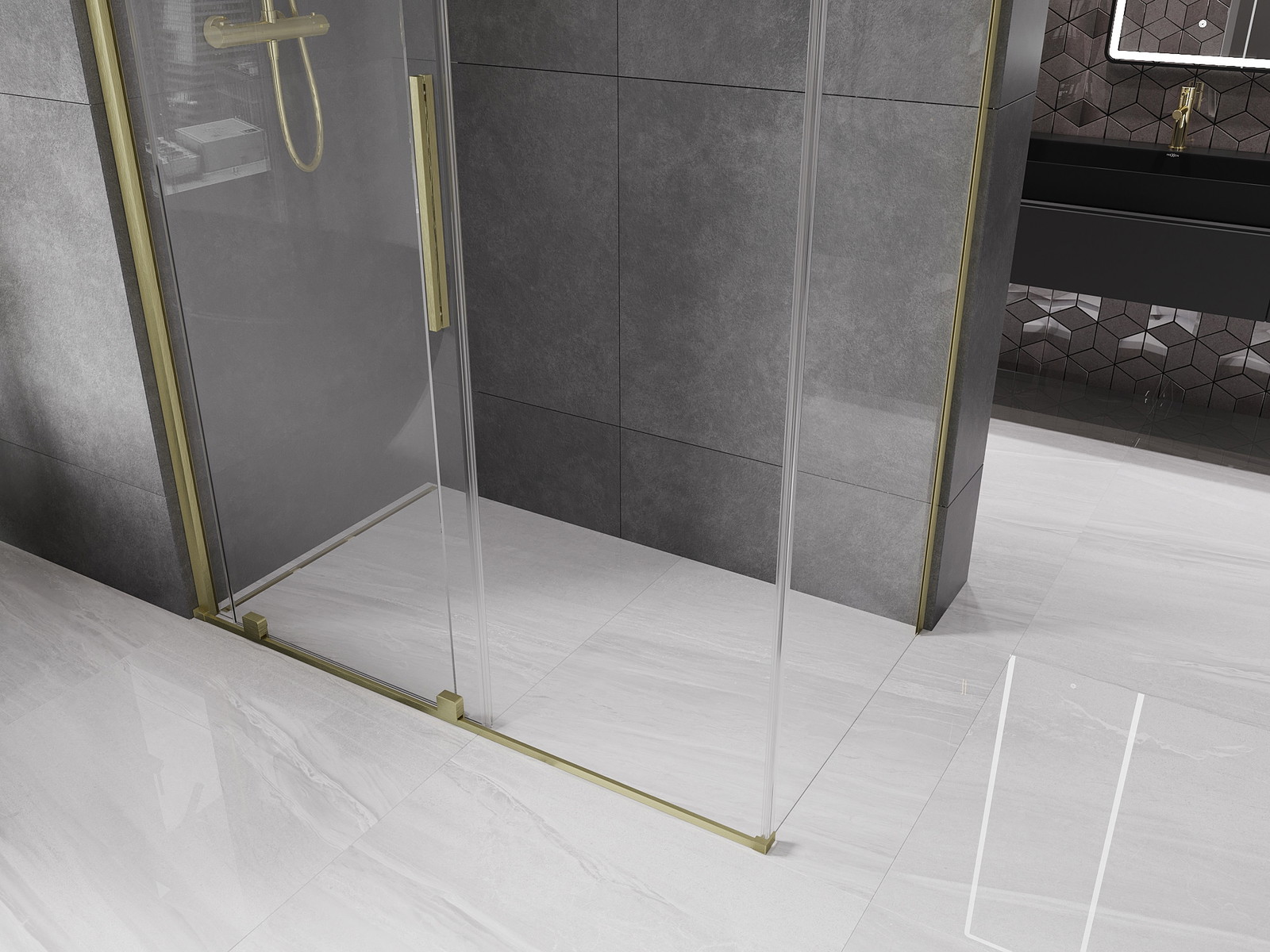 Mexen Velar tuš kabina je odlična izbira za osebe, ki cenijo stil in funkcionalnost. Velikost 150x75 cm z višino 200 cm se idealno prilega sodobnim kopalnicam. Drsna vrata in univerzalna montaža omogočata prilagodljivo namestitev v vsak prostor. Prozorno, kaljeno steklo debeline 8 mm zagotavlja trajnost in varnost, zlati krtačeni profil pa dodaja eleganco. Premaz za lažje čiščenje in izravnava neenakosti stene sta dodatni prednosti, ki to kabino delata edinstveno.