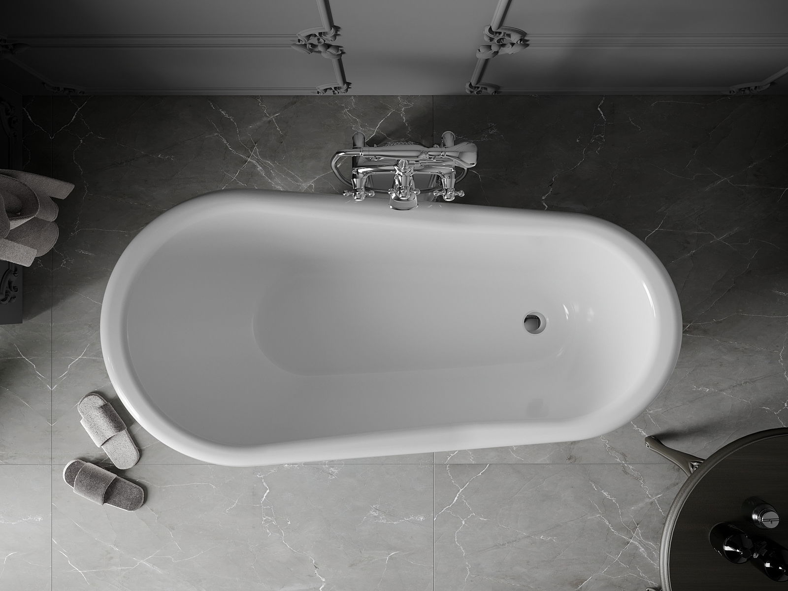 V kompletu je sifon s pokrovčkom klik-klak, ki omogoča hitro odpiranje in zapiranje odtočnega ventila v kadi. Pozabite na iskanje pokrovčka pred kopanjem! Zadostuje en klik, da zaustavite ali izpustite vodo.