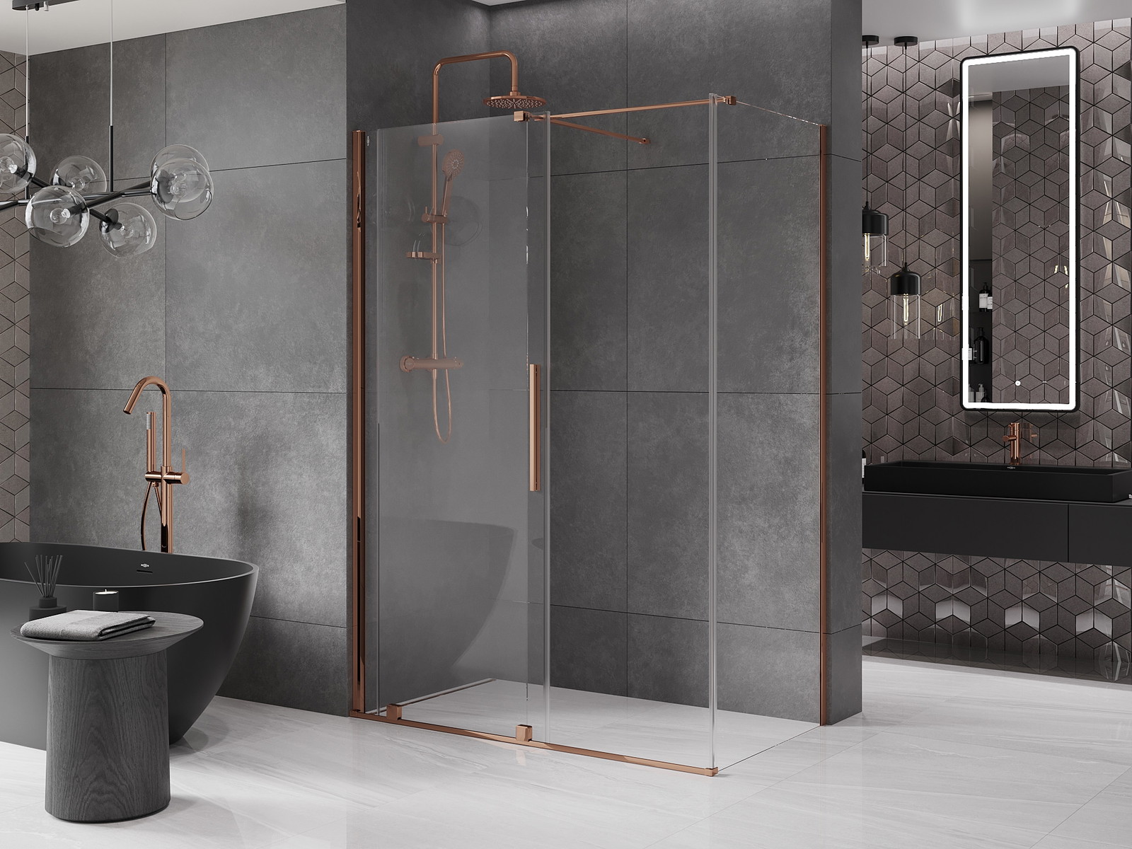 Mexen Velar drsna prhalna kabina 150 x 70 cm, prozorna, rožnato zlato - 871-150-070-01-60