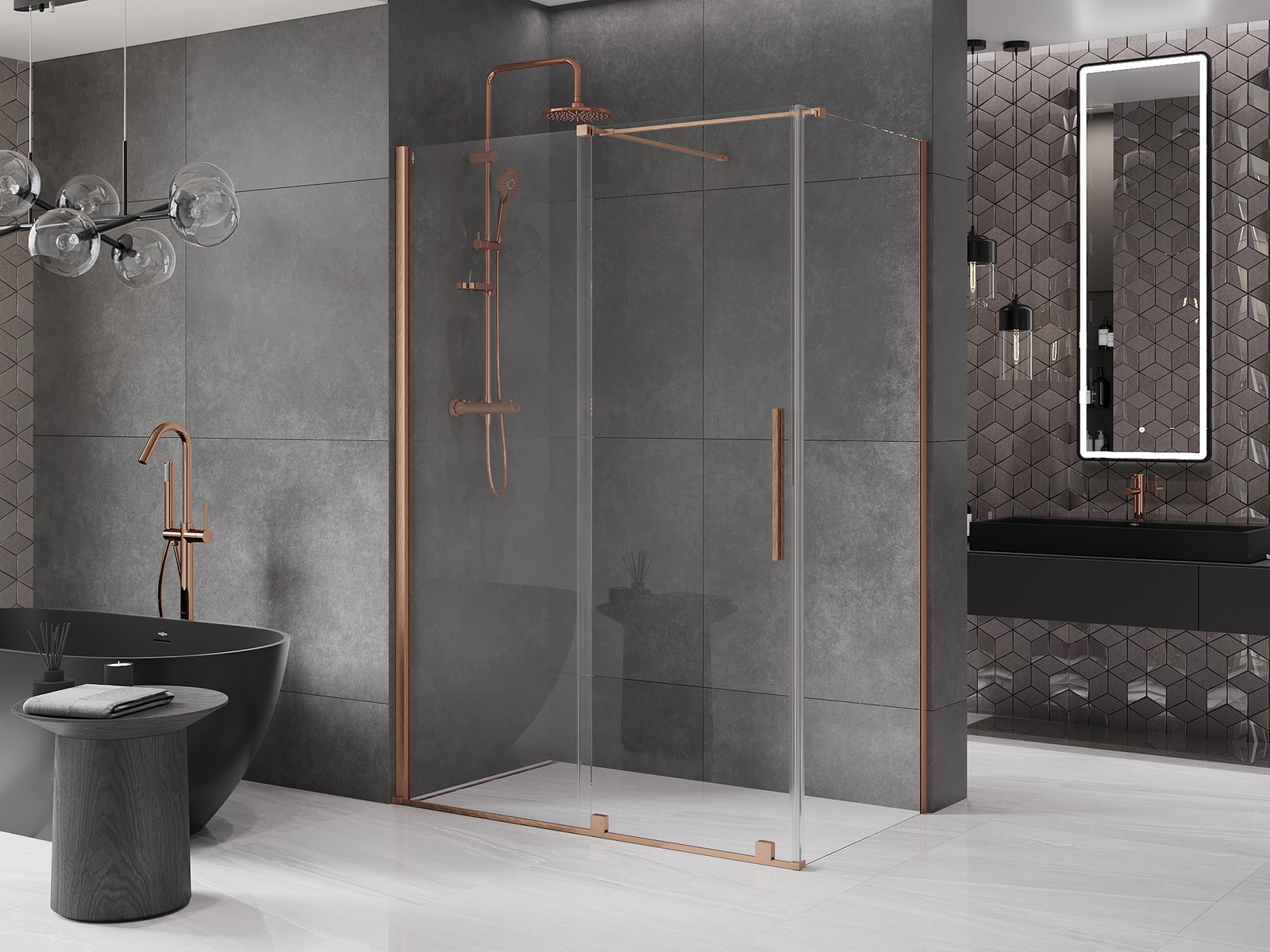 Mexen Velar drsna tuš kabina 160 x 75 cm, prozorna, brušeni baker - 871-160-075-01-65