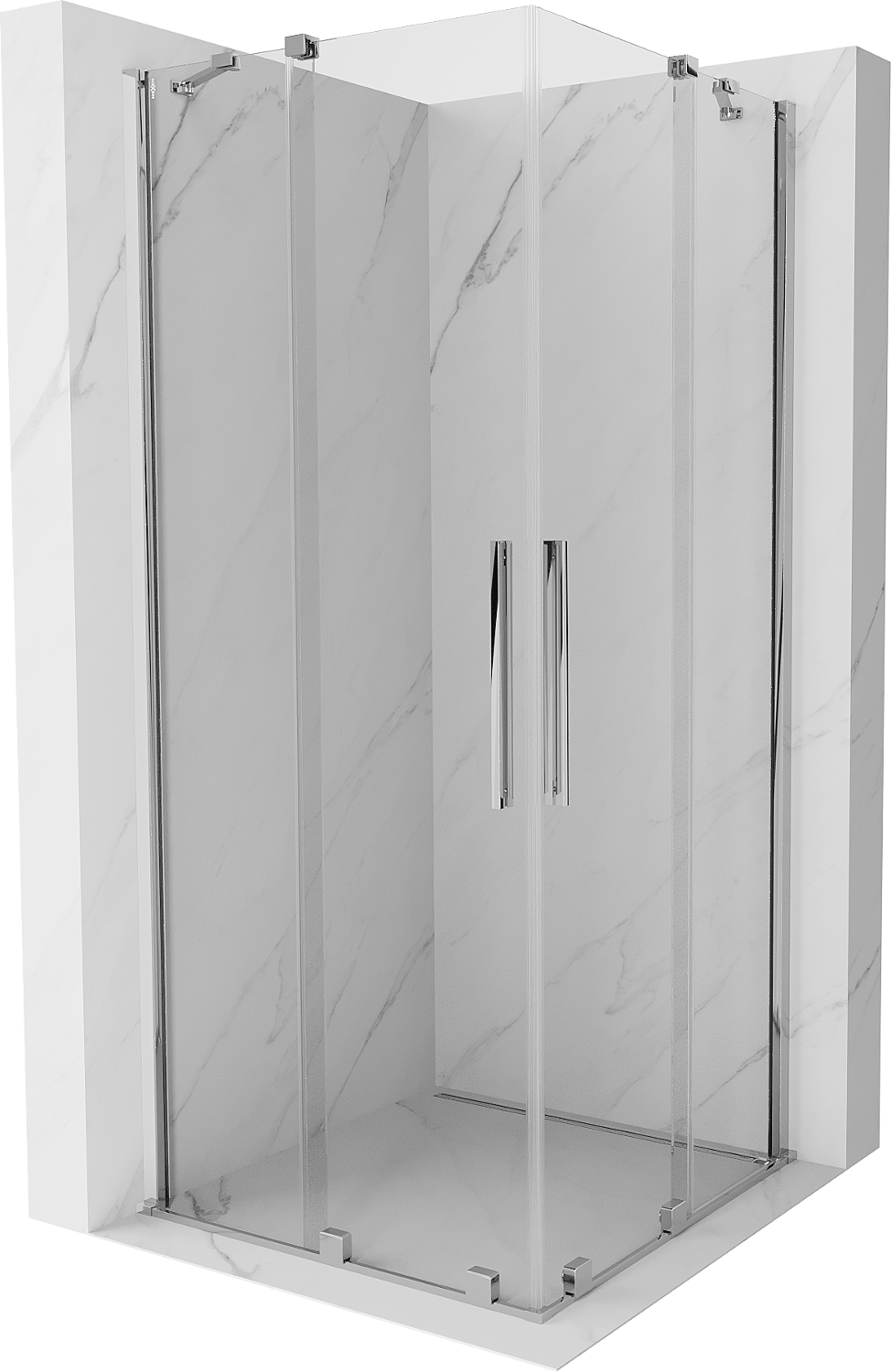 Mexen Velar Dvojna drsna tuš kabina 80 x 80 cm, prozorna, kromirana - 871-080-080-02-01