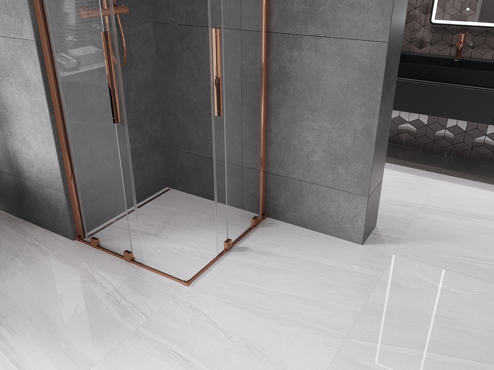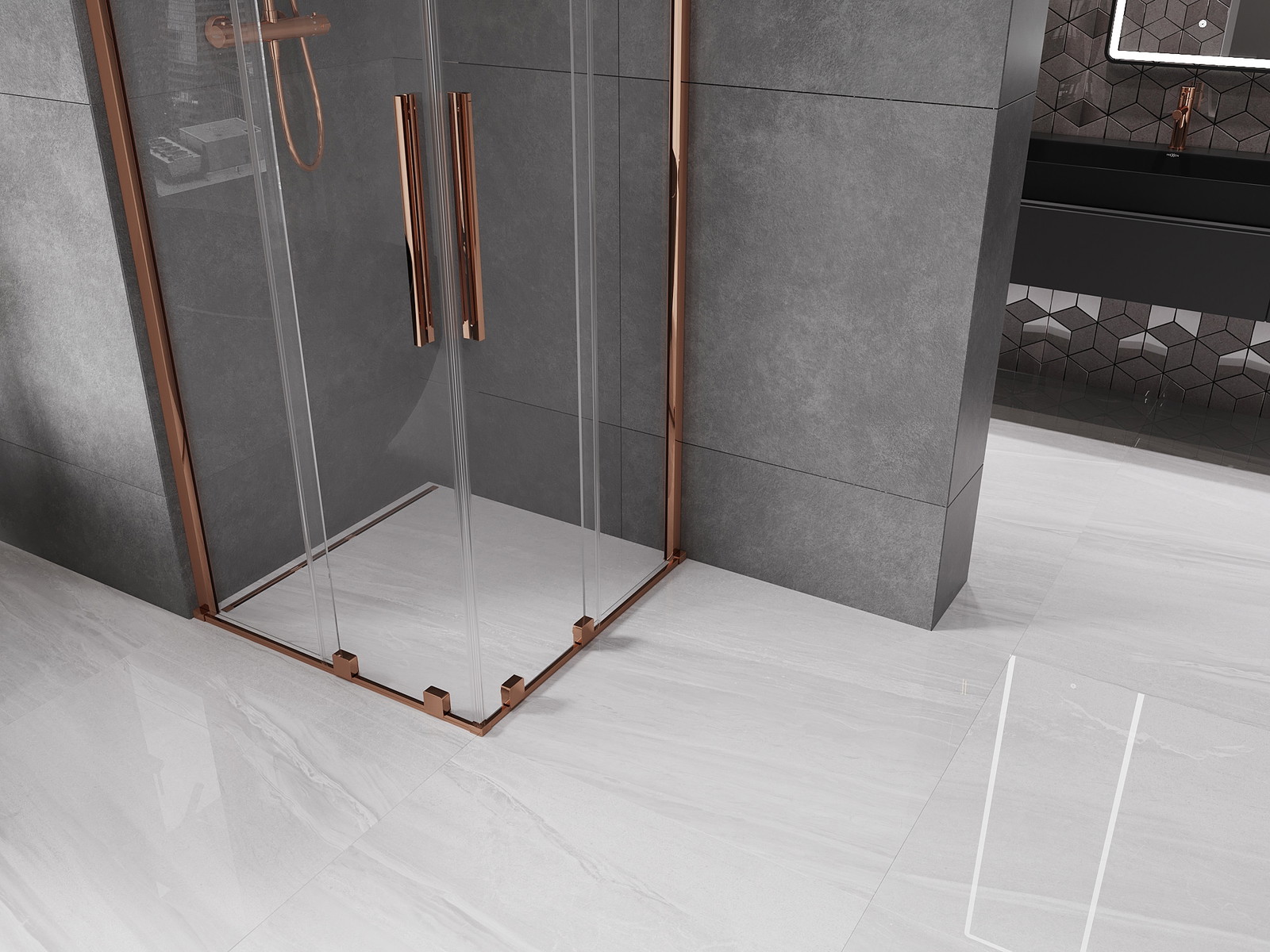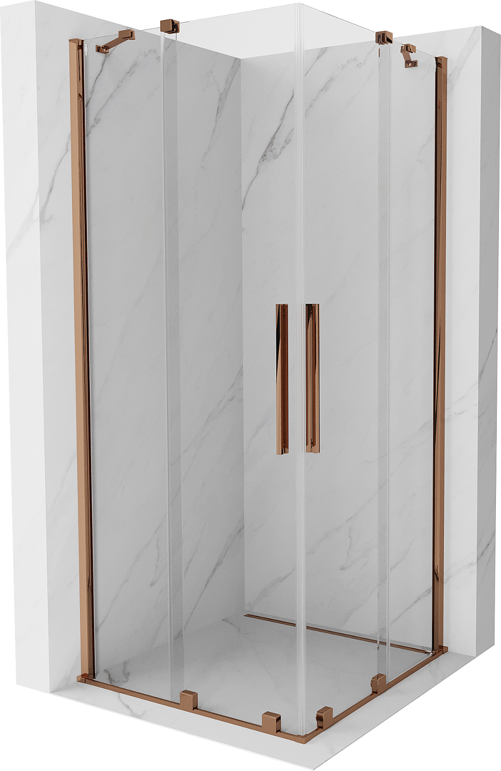 Mexen Velar Dvojna drsna tuš kabina 80 x 80 cm, prozorna, rožnato zlato - 871-080-080-02-60