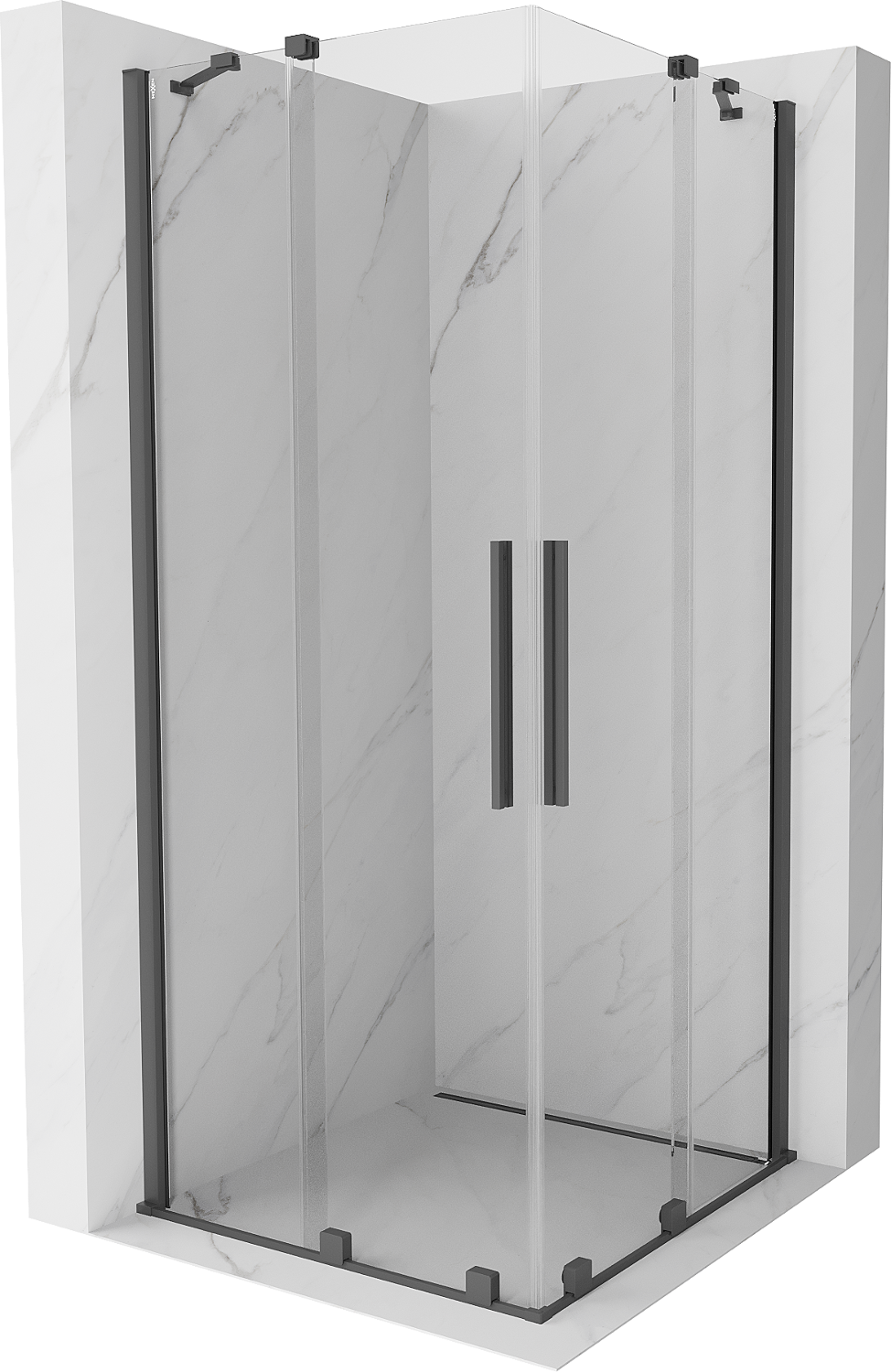 Mexen Velar Duo drsna tuš kabina 80 x 80 cm, prozorna, brušena pištolsko siva - 871-080-080-02-66