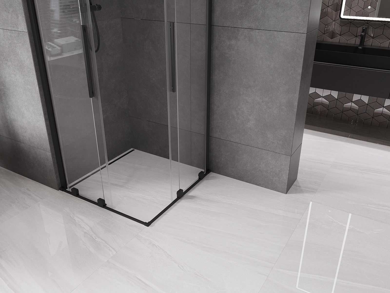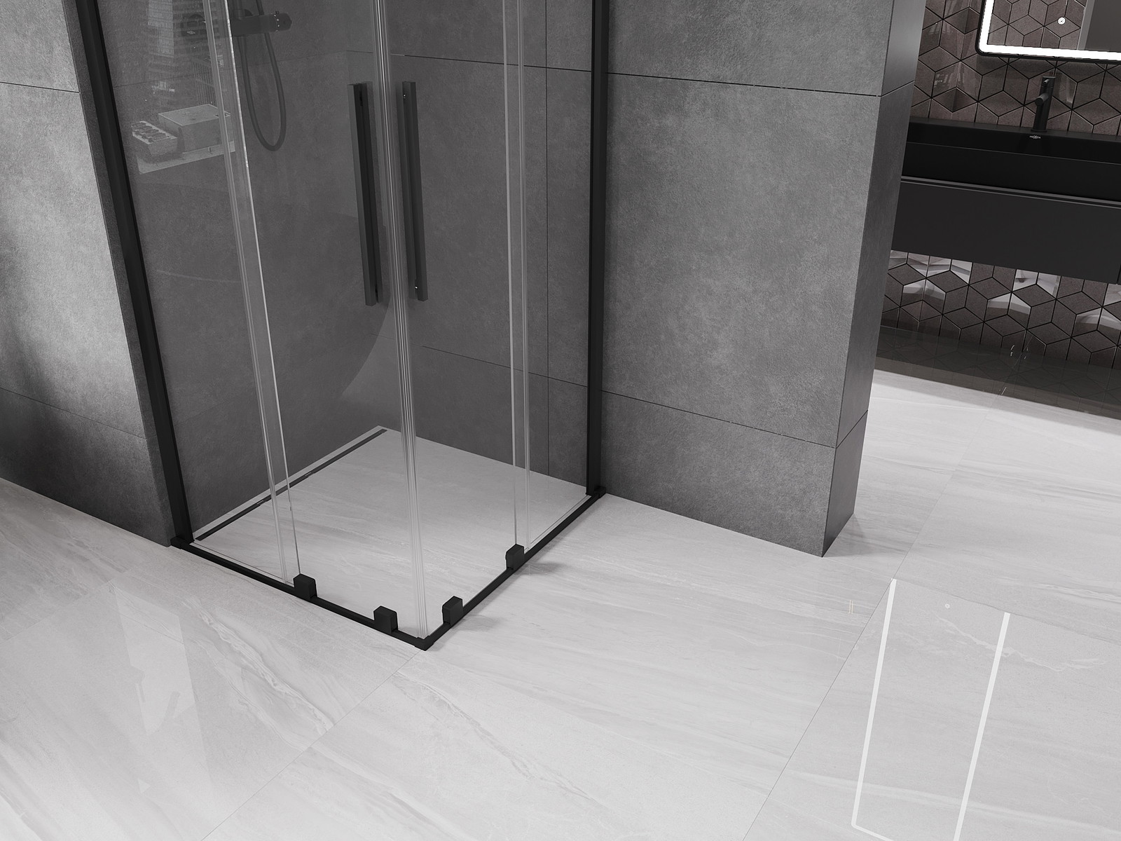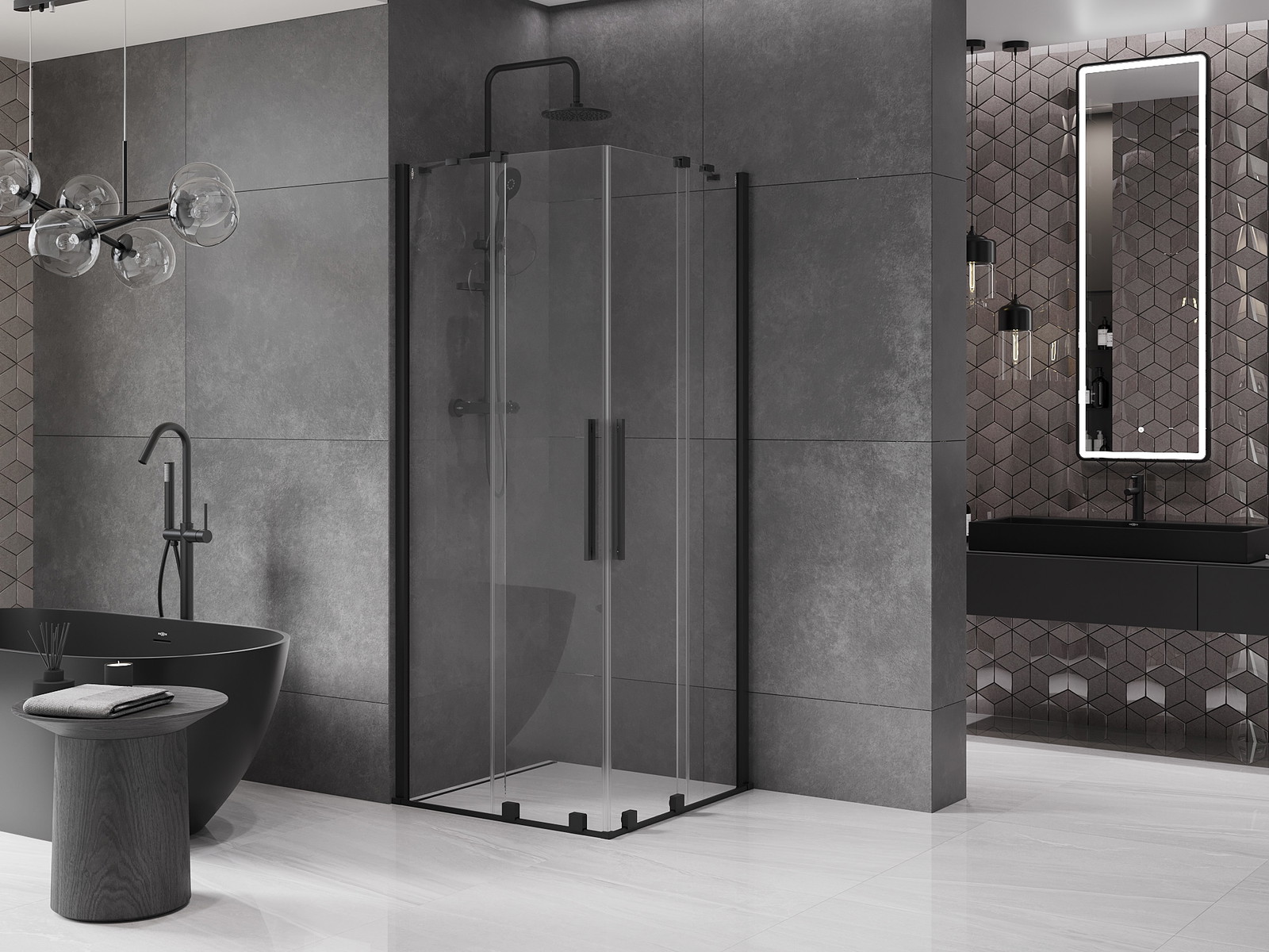 Mexen Velar Duo drsna tuš kabina 80 x 80 cm, prosojna, črna - 871-080-080-02-70