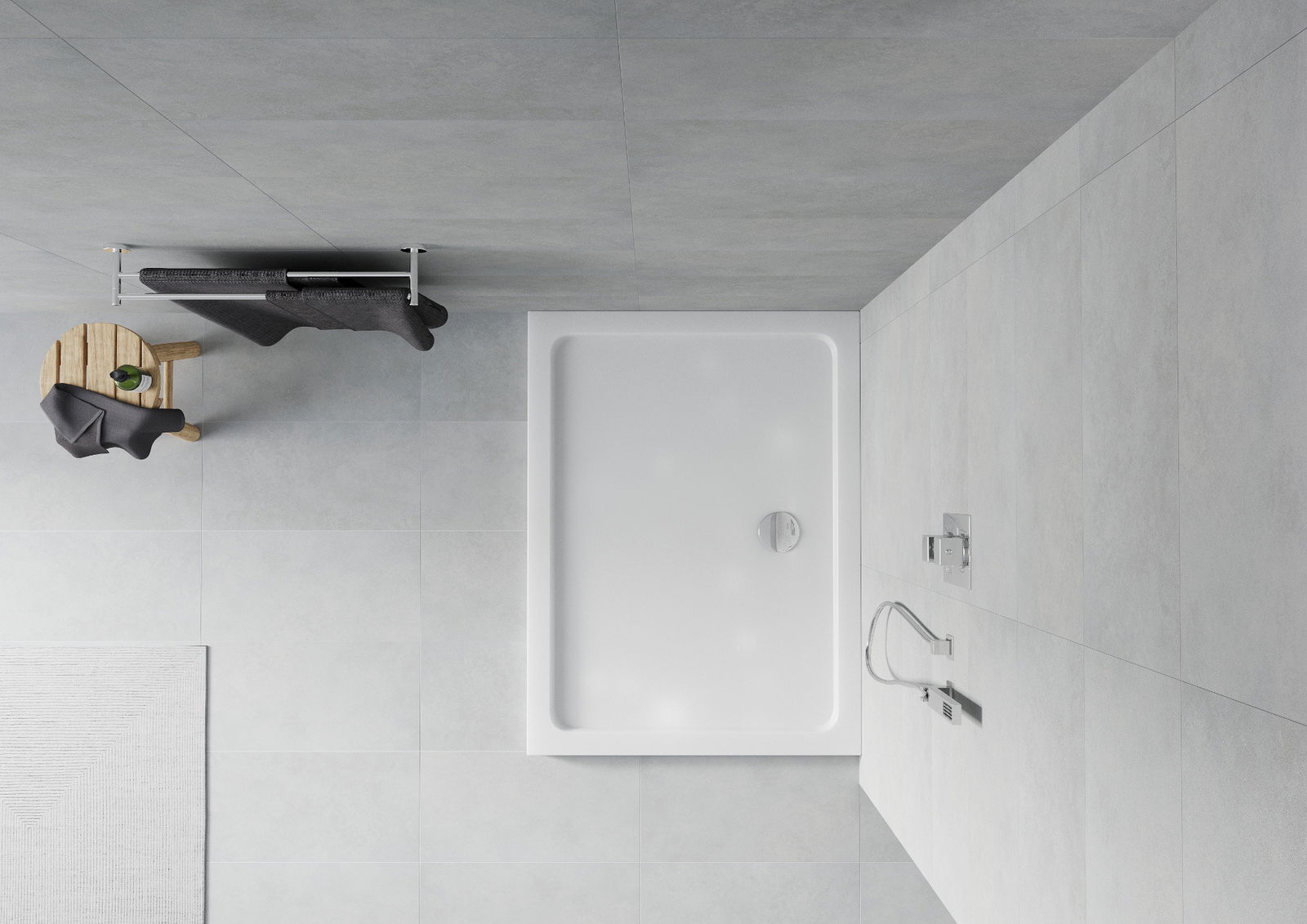 Tuš kad ima nizek prag, kar olajša vstopanje in izstopanje iz prhe. Dodaja prostoru edinstven in brezčasen videz, zaradi česar postane kopalnica udoben in estetski prostor za vsakodnevno sprostitev.