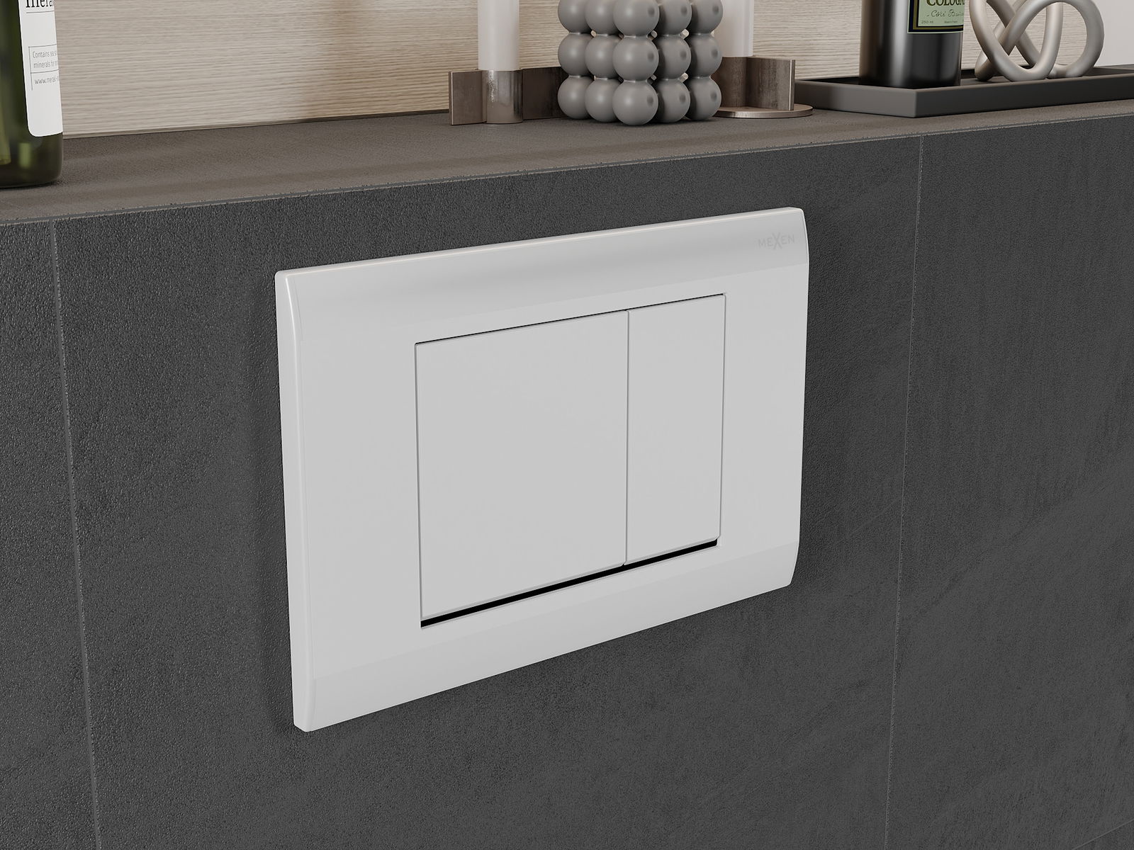 Gumb je namenjen za nadometne okvirje, kjer je mesto montaže na sprednji strani konstrukcije. Takšna postavitev omogoča enostaven dostop in udobno upravljanje splakovanja.
