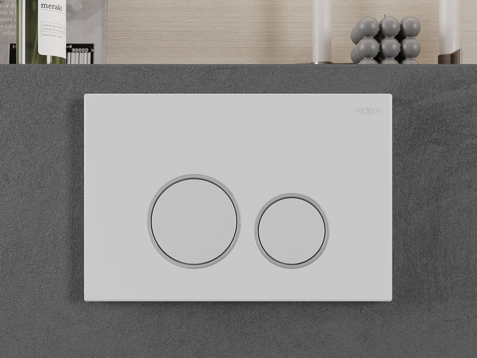 Gumb je namenjen za nadometne okvirje, kjer je mesto montaže na sprednji strani konstrukcije. Takšna postavitev omogoča enostaven dostop in udobno upravljanje splakovanja.