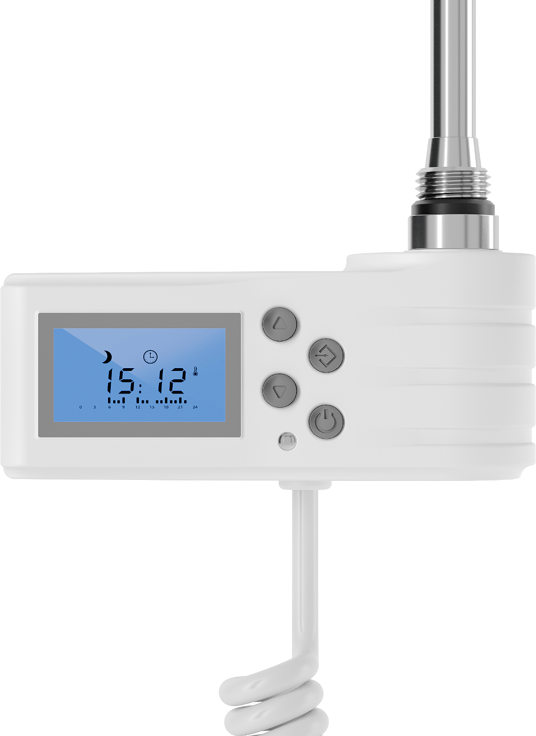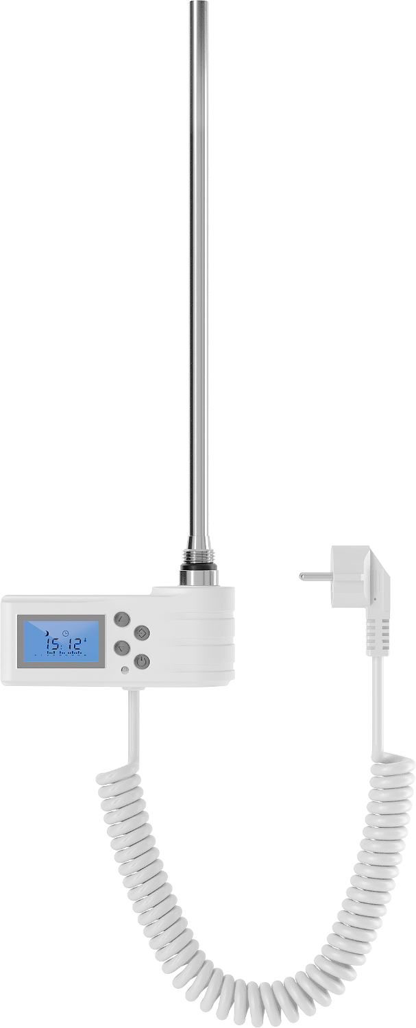 Mexen električni grelec 450 W (bela) je učinkovita in sodobna rešitev za vašo kopalnico. Ima skupno dolžino 490 mm in grelni element dolžine 415 mm. Grelec deluje na napetosti 230V/50Hz in ponuja moč 450 W. Bela barva se odlično ujema z vsakim notranjim prostorom. Opremljen je z LED zaslonom, otroško ključavnico in funkcijami, kot so Sensitive, Comfort, Smart, ECO in Anti-frost. Stopnja zaščite IP44 ter dodatna zaščita pred delovanjem na 'suho' zagotavljata varnost in udobje pri uporabi.
