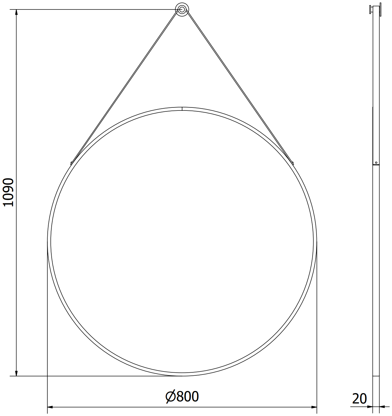 Mexen String okroglo kopalniško ogledalo 80 cm, črn okvir - 9854-080-080-000-70