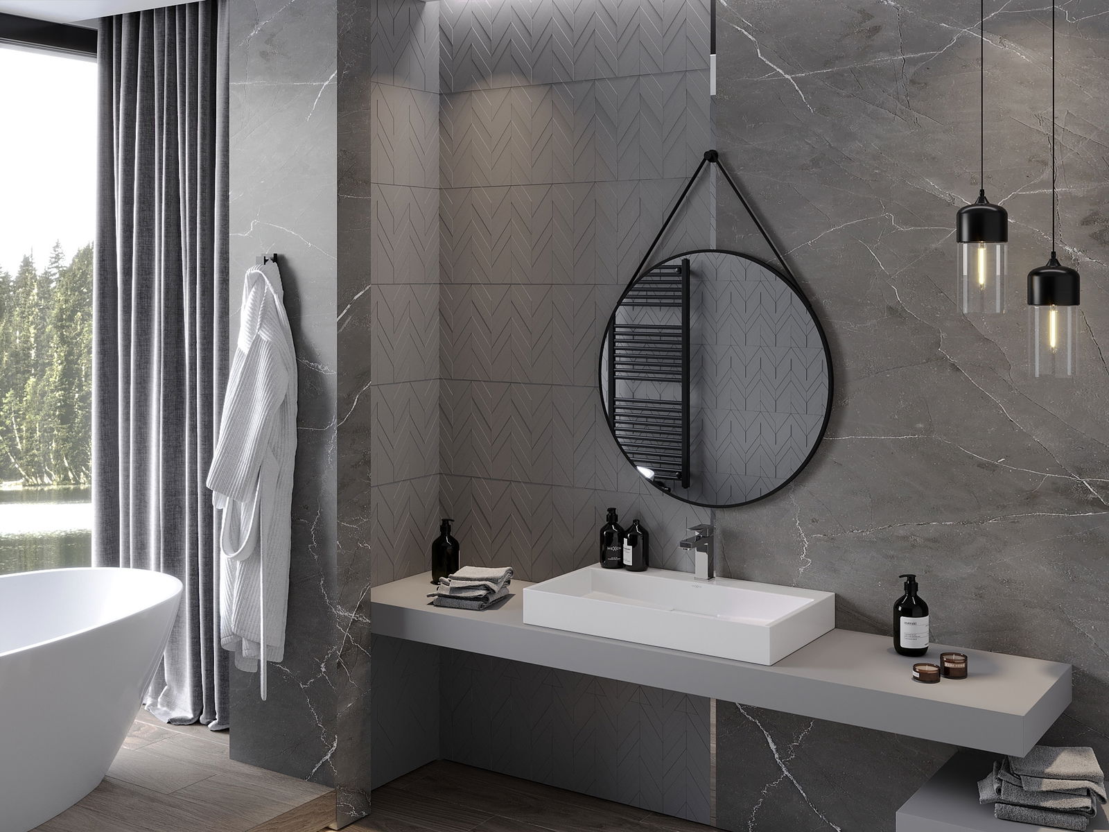Ogledalo je izdelano iz surovin najvišje kakovosti, odpornih proti zunanjim dejavnikom, kot sta vlaga in vodna para, kar je odlična izbira za prostore, kot je kopalnica. Uporaba visokokakovostnih materialov zagotavlja, da je ogledalo trpežno in odporno proti praskam.