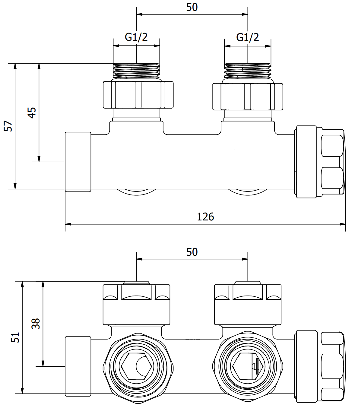 Spodnji priključek z razdaljo 50 mm