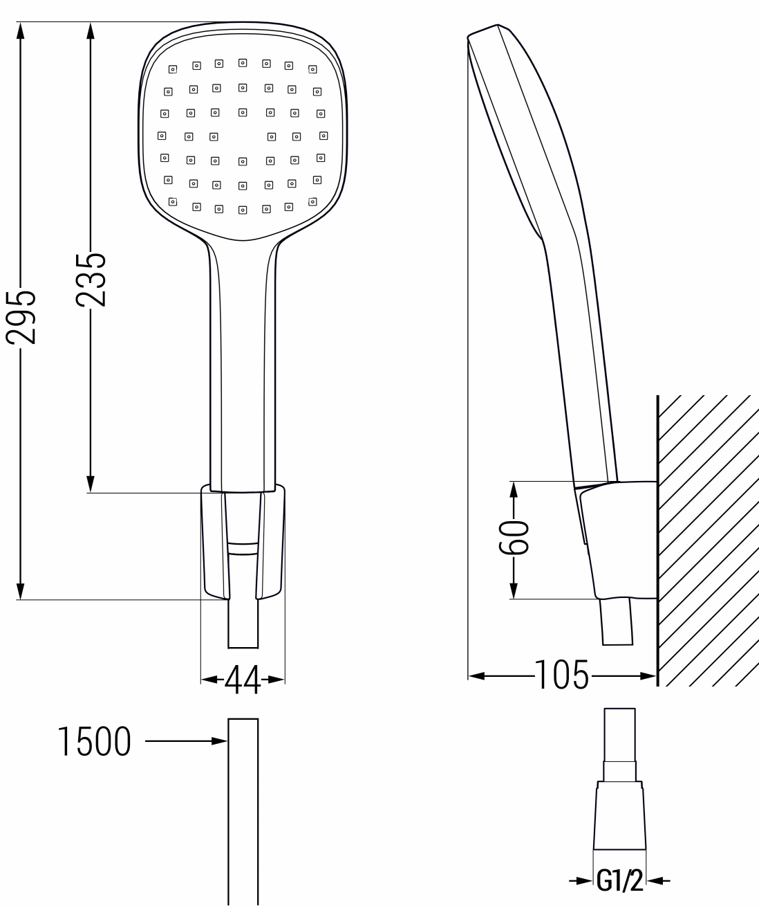 Priključek z navojem 1/2" je splošno uporabljan standardni element v notranjih vodovodnih instalacijah. Zahvaljujoč temu je priključitev in montaža naslednjih delov tuša veliko lažja in bolj intuitivna.