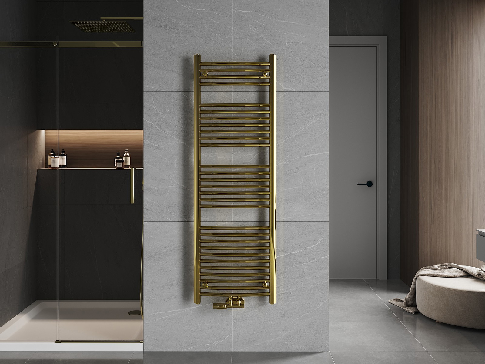 Mexen Ares kopalniški radiator je eleganten dodatek vsaki kopalnici. Izdelan iz jekla, odlikuje se z impresivnimi dimenzijami 1500 x 500 mm in ogrevalno močjo 498 W. Zlata barva doda notranjosti luksuzen videz. Radiator je opremljen s spodnjimi in sredinskimi priključki ter možnostjo montaže grelnika. Zahvaljujoč visokokakovostni lakirani prevleki je odporen na korozijo. V kompletu so obešalniki, montažni set, zaporni čepi in odzračevalnik, kar olajša namestitev.