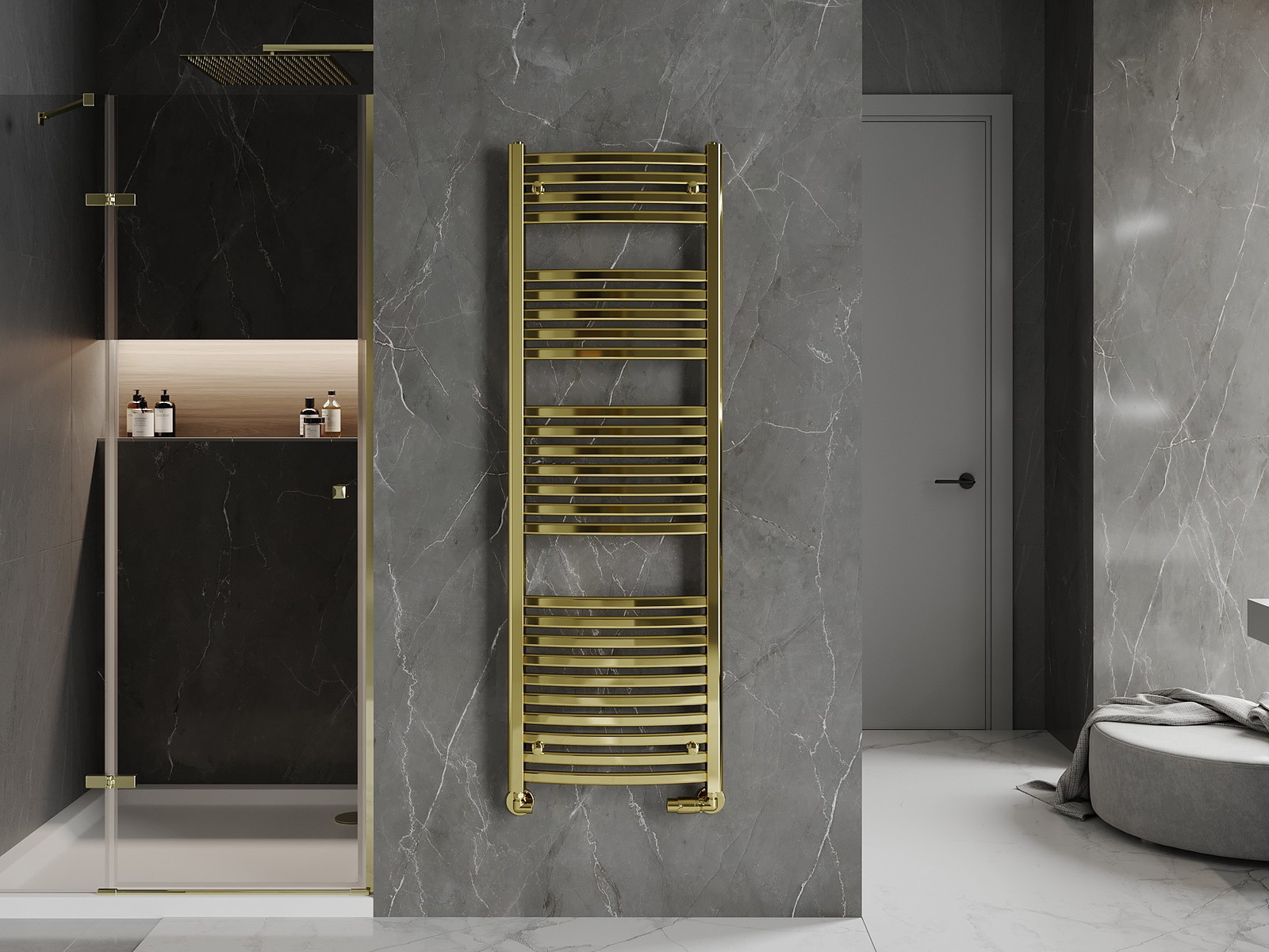 Mexen Helios je eleganten in funkcionalen kopalniški radiator v zlati barvi, ki prinaša luksuzen pridih vsaki kopalnici. Z močjo 534 W učinkovito ogreva prostor, njegova višina 1500 mm, širina 500 mm in globina 54 mm pa omogočajo optimalen izkoristek prostora. Izdelan iz trpežnega jekla, odporen proti koroziji zaradi visokokakovostnega laka. Poleg tega ima izdelek odziv na ogenj razreda A1 in možnost namestitve grelnega elementa za povečanje funkcionalnosti. Vključuje montažni komplet in odzračevalni ventil.