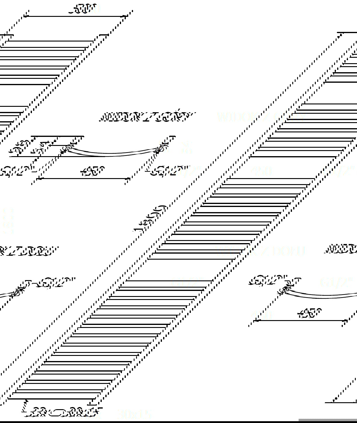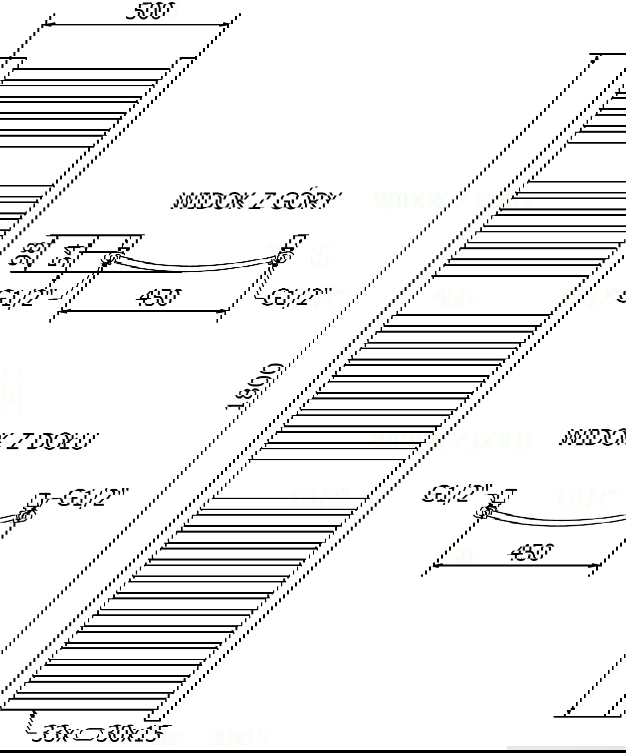 - 4xG ½″ od zgoraj in spodaj z desne ali leve strani