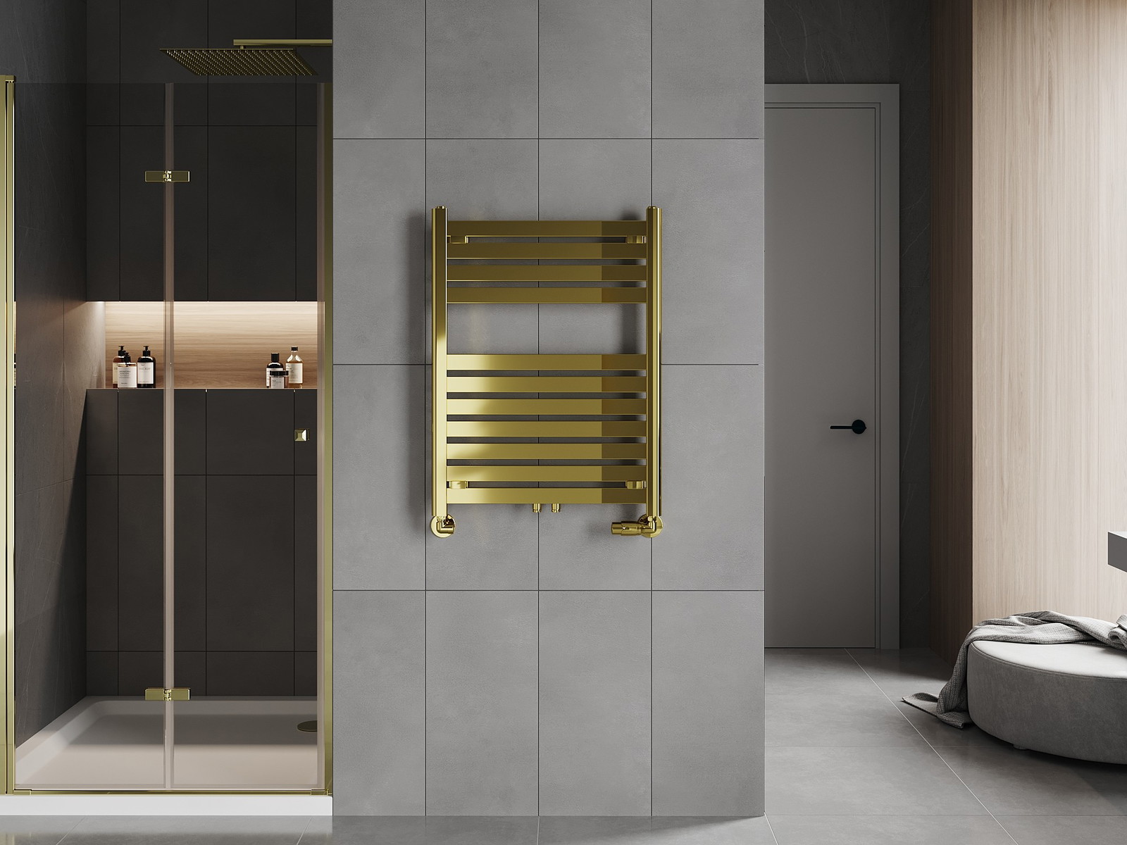 Mexen Uran kopalniški radiator v zlati barvi je idealna rešitev za elegantno kopalnico. Z merami 800 x 600 mm in ogrevalno močjo 336 W zagotavlja optimalno ogrevanje. Trdna konstrukcija iz jekla in trajna barvna prevleka, odporna na korozijo, zagotavljata dolgo življenjsko dobo. Radiator je združljiv z grelnikom, možnost različnih razdalj priključitve pa zagotavlja fleksibilnost montaže. Enostaven za namestitev zahvaljujoč priloženim montažnim dodatkom.