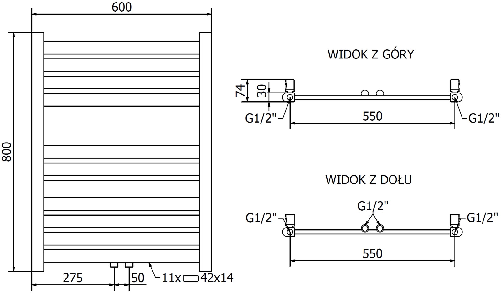 - 4xG ½″ od zgoraj in spodaj z desne ali leve strani
