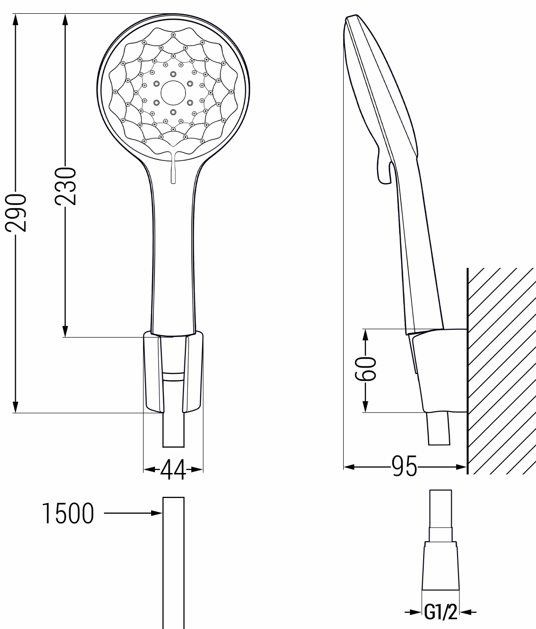 Priključek z navojem 1/2" je splošno uporabljan standardni element v notranjih vodovodnih instalacijah. Zahvaljujoč temu je priključitev in montaža naslednjih delov tuša veliko lažja in bolj intuitivna.