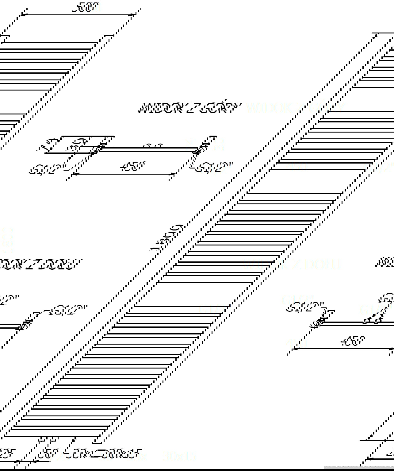 - 4xG ½″ od zgoraj in spodaj z desne ali leve strani