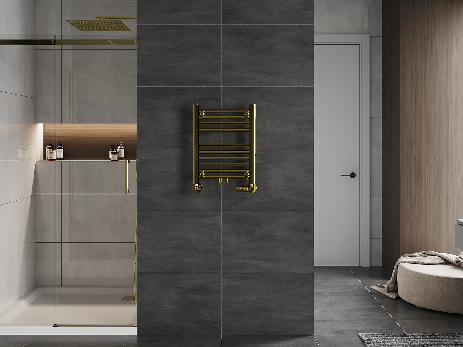 Mexen Mars je stilski kopalniški radiator dimenzij 500 x 400 mm in moči 141 W, ki izstopa v elegantni zlati barvi in robustni jekleni konstrukciji. Zahvaljujoč kompaktnim dimenzijam se popolnoma prilega kopalniškemu prostoru. Omogoča spodnji in sredinski priklop, kar ga naredi za univerzalno rešitev za vsako kopalnico. Trpežni lakirani premaz zagotavlja odpornost na korozijo, komplet pa vsebuje potrebne montažne dodatke in prezračevalni ventil. Razred odziva na ogenj A1 povečuje varnost uporabe.