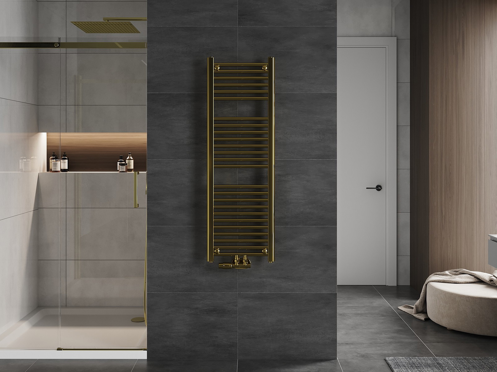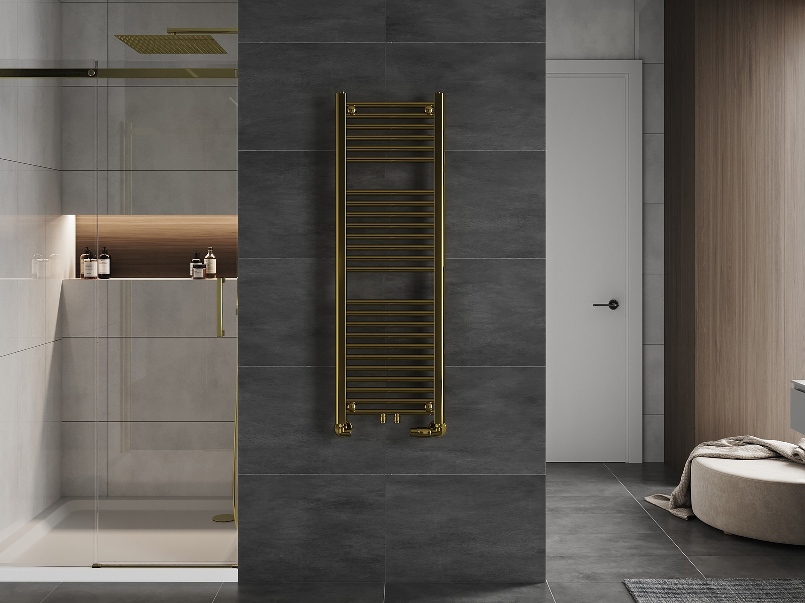 Mexen Mars kopalniški radiator je idealna rešitev za vašo kopalnico. Njegova zlata barva dodaja eleganco, jeklena konstrukcija pa zagotavlja trpežnost in odpornost na korozijo. Z močjo 346 W in največjo delovno temperaturo 95°C zagotavlja ustrezno ogrevanje prostorov. Izdelek je fleksibilen pri montaži, z različnimi možnostmi priključkov ter možnostjo namestitve grelca. V kompletu so obešala, montažni set in odzračevalnik. Idealna izbira za zahtevne!