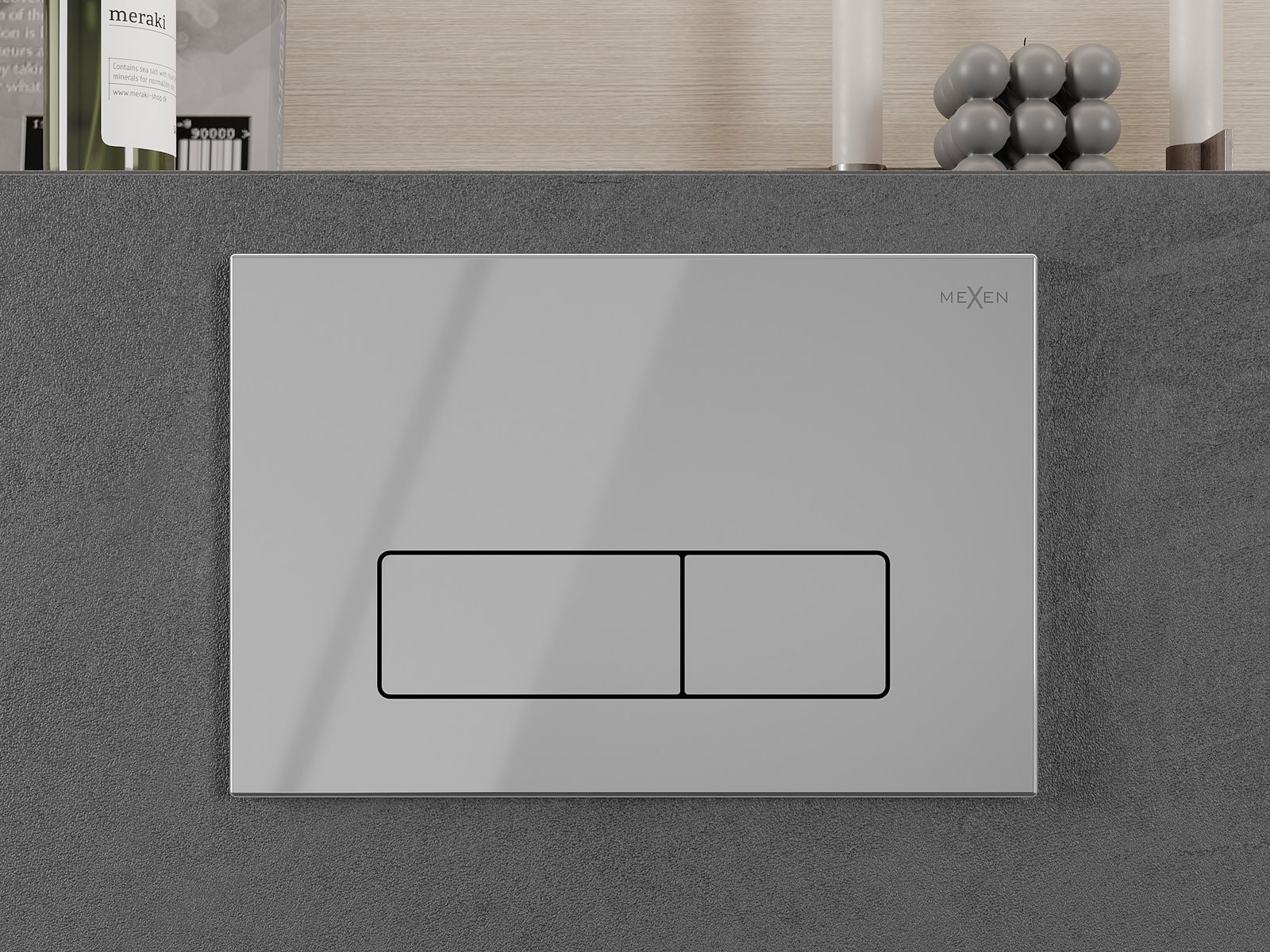 Gumb je namenjen za nadometne okvirje, kjer je mesto montaže na sprednji strani konstrukcije. Takšna postavitev omogoča enostaven dostop in udobno upravljanje splakovanja.