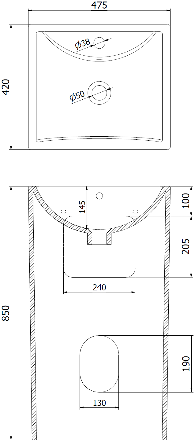 Prelivna odprtina se imenuje "varnostna odprtina". Skozi njo odteka presežna voda, kar preprečuje, da bi voda presegla rob izdelka, ko je spodnji odtok zaprt. To je zelo varna in praktična rešitev.