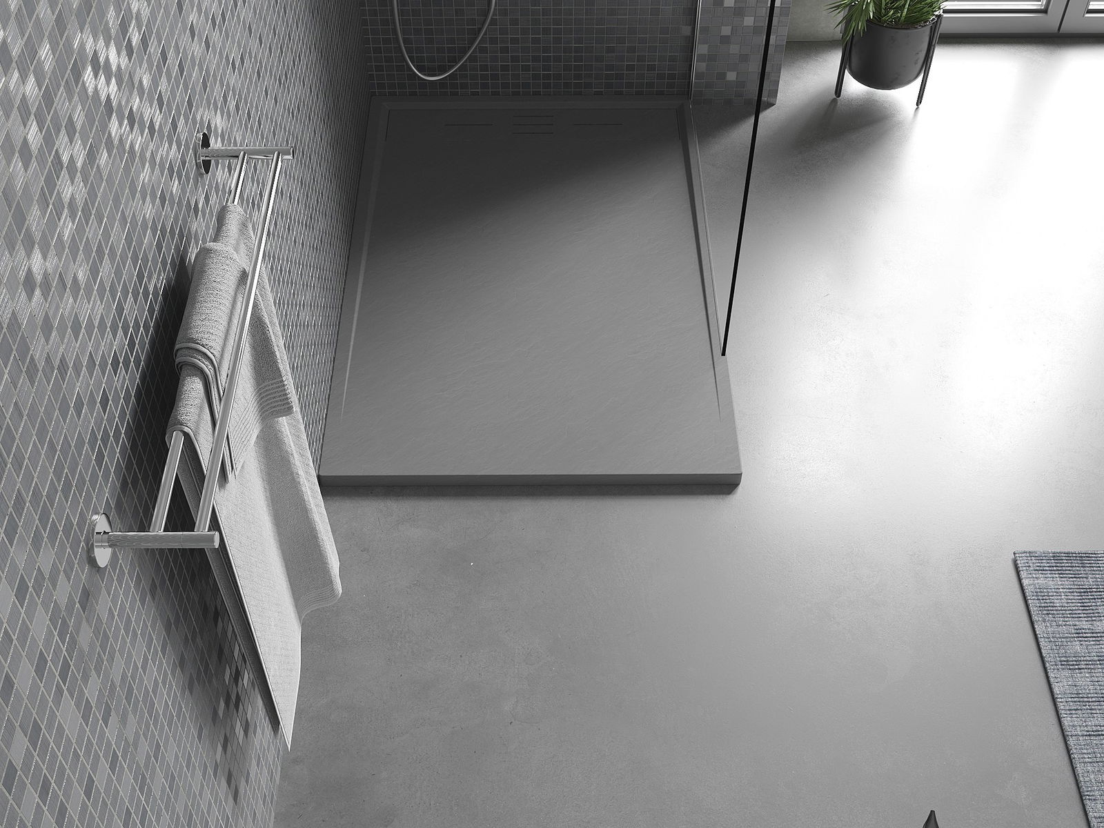 Površina pršne kabine v svoji strukturi spominja na kamen. Predstavlja edinstveno povezavo naravnega videza s sodobno notranjo opremo. Dodaja karakter, poudarja estetiko in eleganco zasnove kopalnice ter navdušuje s svojo obliko.