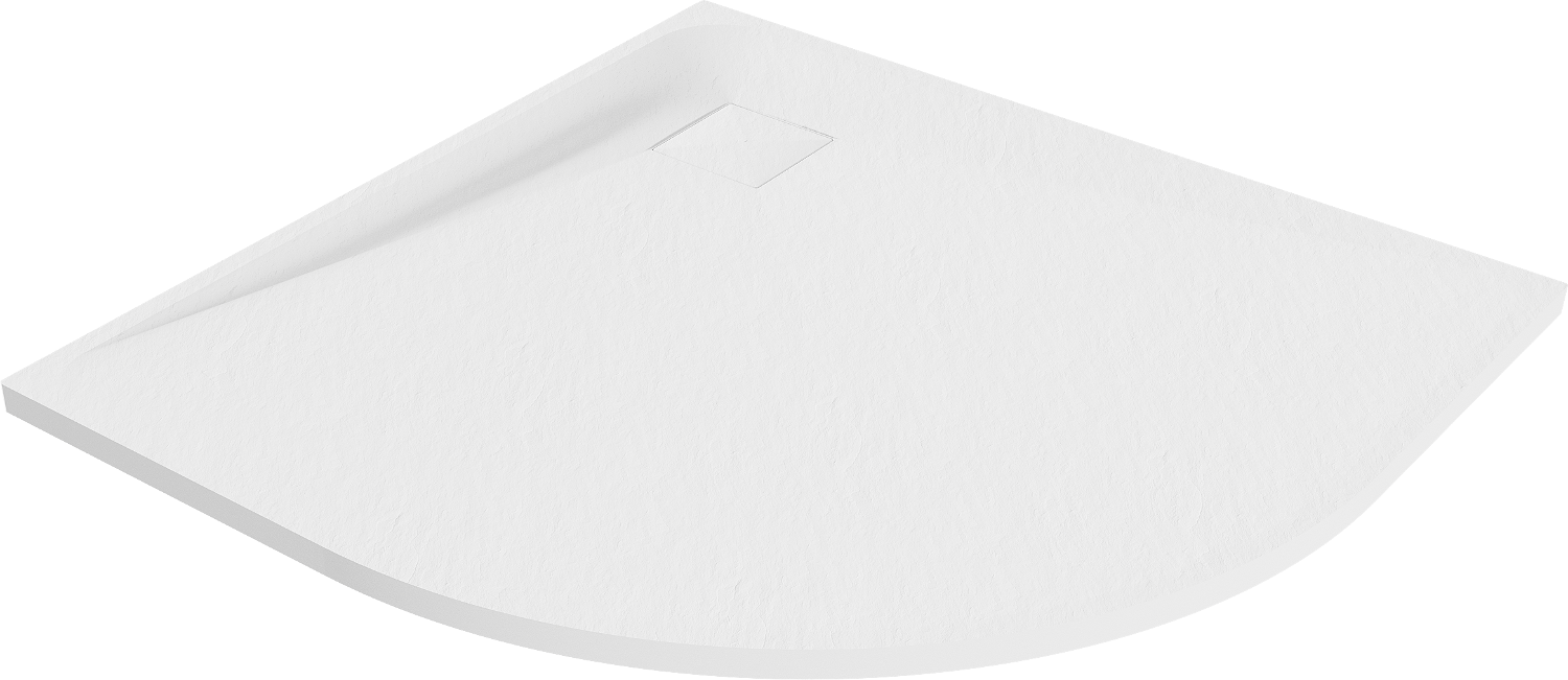 Polkrožni tuš SMC 90 x 90 cm je idealna rešitev za vsako kopalnico. Zaradi ultratanke konstrukcije z višino samo 2,6 cm prihranite prostor in hkrati zagotovite udobje uporabe. Narejen iz vzdržljivega materiala SMC tuš odlikuje odpornost na deformacije in udarce. Bela barva in struktura kamna dodajata eleganco, možnost obrezovanja pa omogoča popolno prilagoditev vsakemu notranjemu prostoru. Set vključuje sifon, ki se čisti od zgoraj, ter premer odtoka 90 mm.