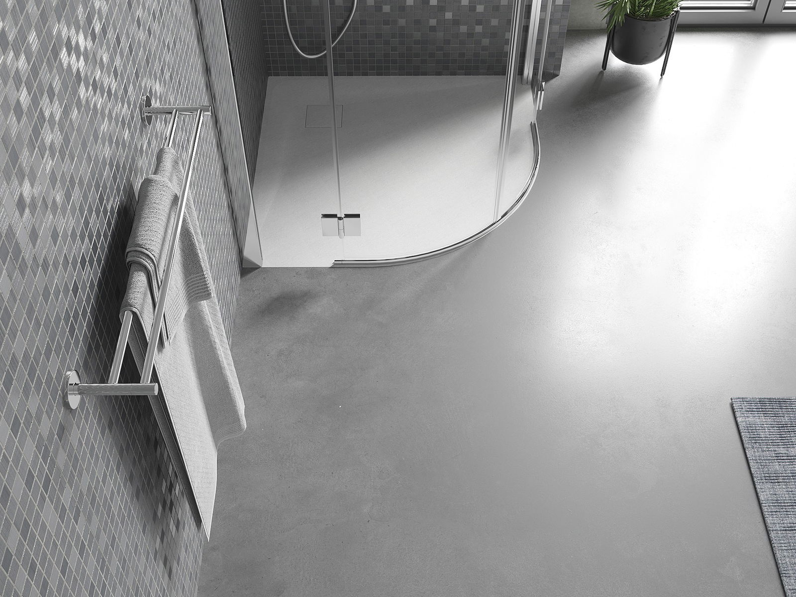 Površina pršne kabine v svoji strukturi spominja na kamen. Predstavlja edinstveno povezavo naravnega videza s sodobno notranjo opremo. Dodaja karakter, poudarja estetiko in eleganco zasnove kopalnice ter navdušuje s svojo obliko.