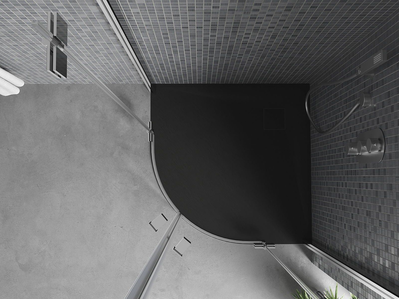 Polkrožni tuš Mexen Bert dimenzij 80 x 80 cm v črni barvi je idealna rešitev za vsako moderno kopalnico. Narejen iz trajne umetne mase SMC, se ponaša z kamnito strukturo in ultraploščato konstrukcijo, kar omogoča enostavno montažo tako v tleh kot na tleh. Izdelek zagotavlja maksimalno stabilnost zaradi visoke odpornosti na udarce ter možnost obrezovanja. V kompletu je sifon, ki se čisti od zgoraj, z odtokom premera 90 mm.