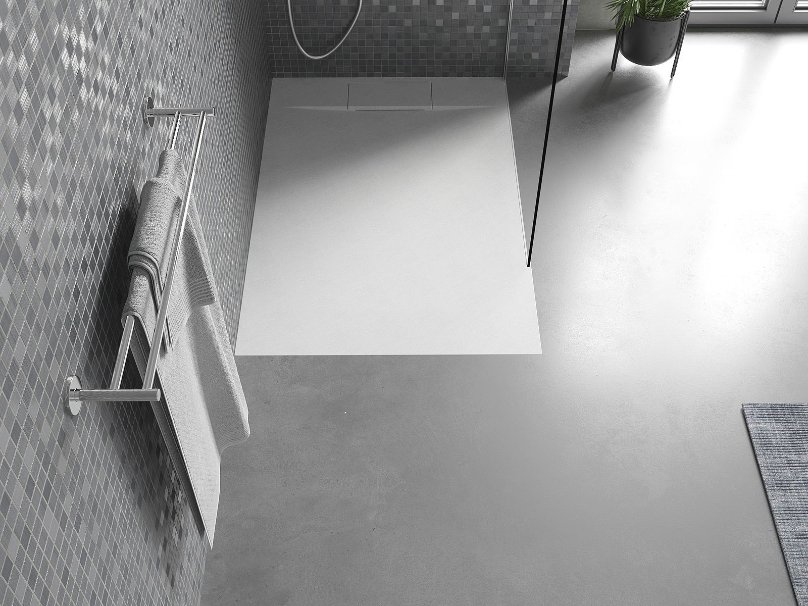 Površina pršne kabine v svoji strukturi spominja na kamen. Predstavlja edinstveno povezavo naravnega videza s sodobno notranjo opremo. Dodaja karakter, poudarja estetiko in eleganco zasnove kopalnice ter navdušuje s svojo obliko.