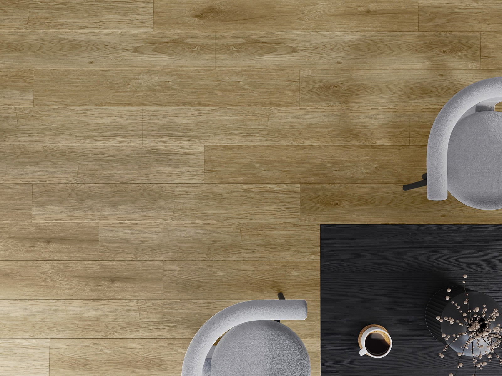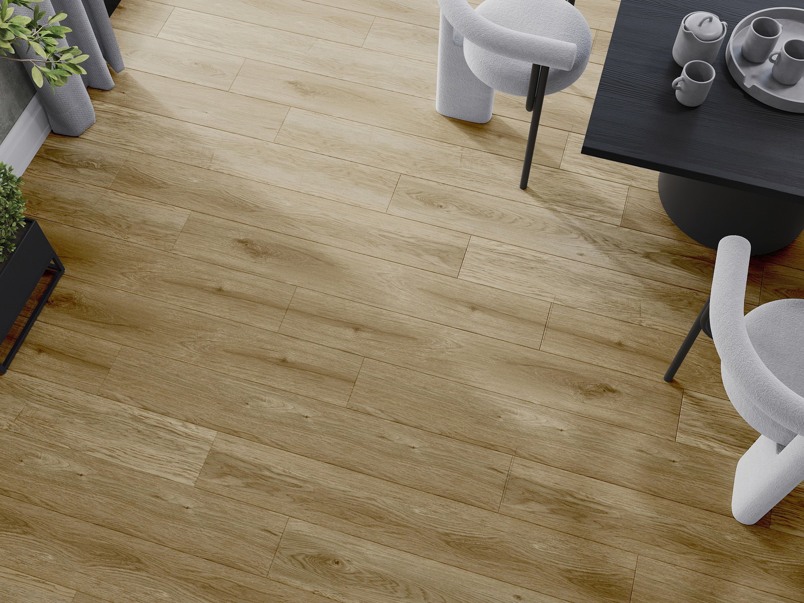 Plošče imajo 4-stranski utor - vsak rob je bil obdelan na tak način, da po polaganju nastane spoj v obliki črke V. Tak dizajn poudari strukturo tal, kar jim daje globino in estetski karakter. Ta učinek je še posebej cenjen v sodobnih aranžmajih, kjer detajli poudarjajo edinstven videz notranjosti.