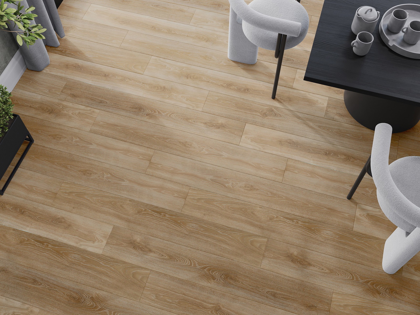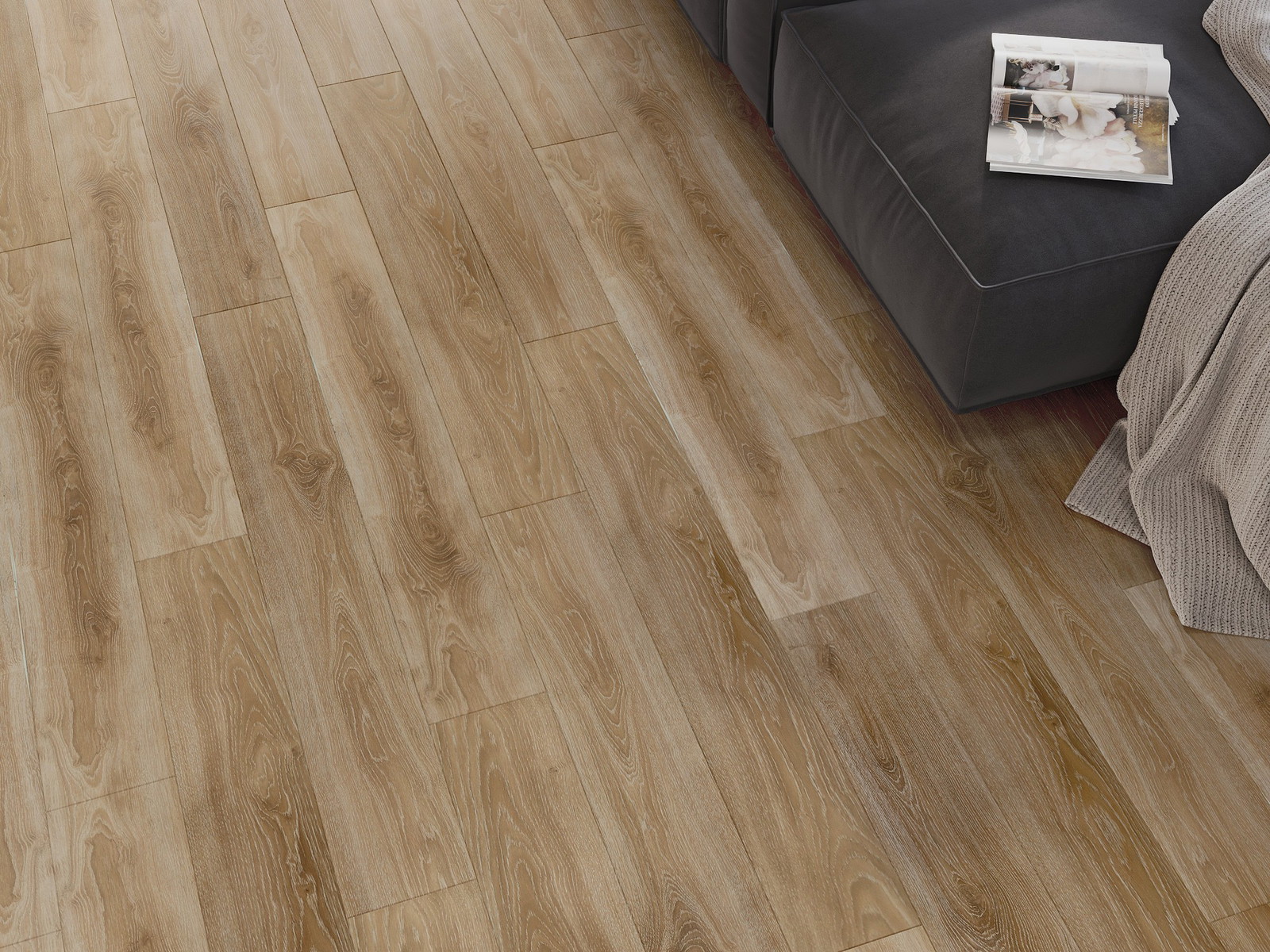 Plošče imajo 4-stranski utor - vsak rob je bil obdelan na tak način, da po polaganju nastane spoj v obliki črke V. Tak dizajn poudari strukturo tal, kar jim daje globino in estetski karakter. Ta učinek je še posebej cenjen v sodobnih aranžmajih, kjer detajli poudarjajo edinstven videz notranjosti.
