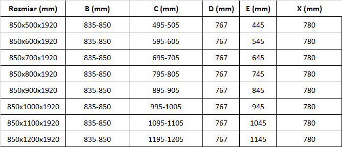 Velikost: 85x80 cm (vrata 85 cm, stena 80 cm)