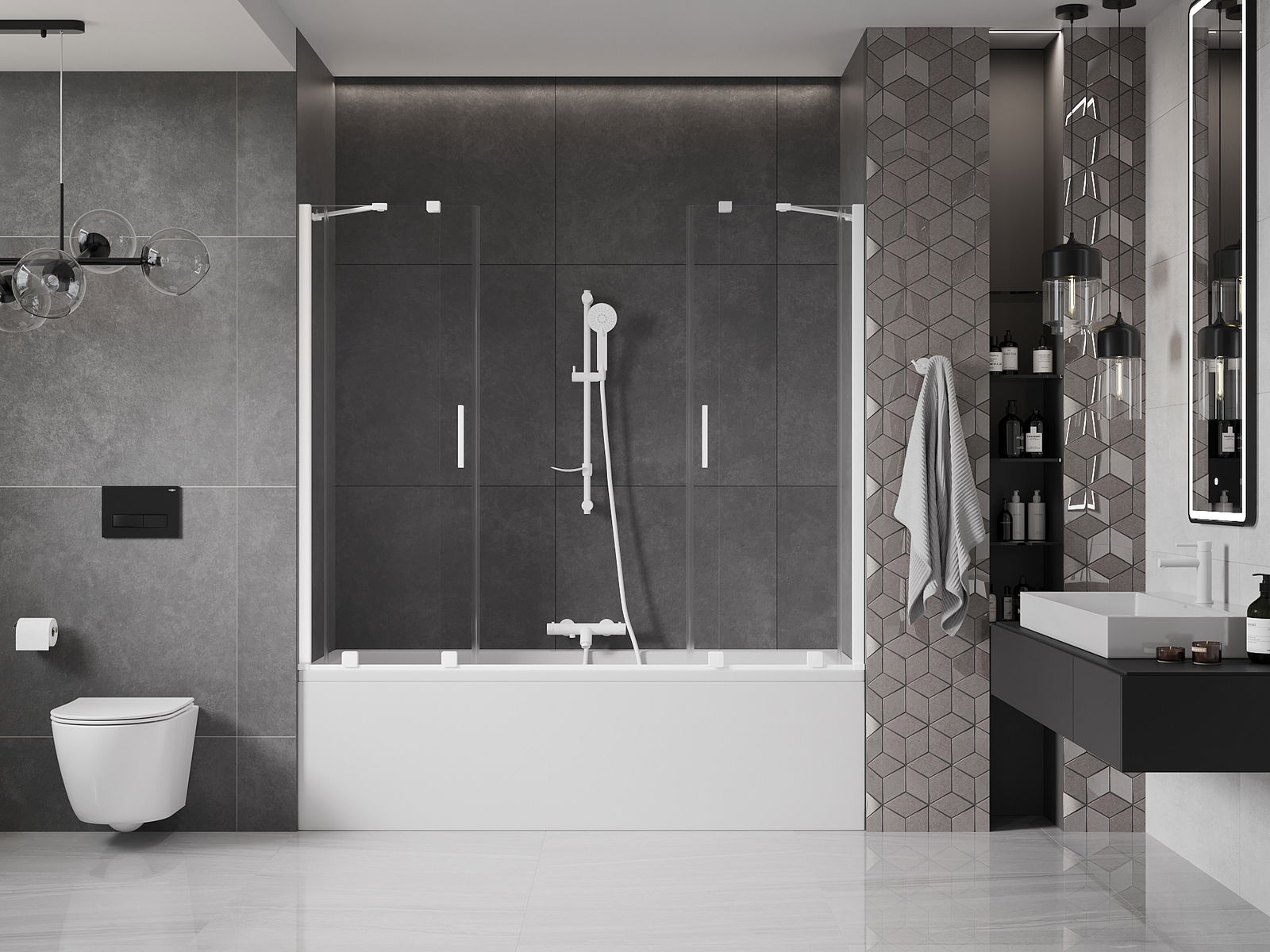 Mexen Velar Duo tuš pregrada 2-krilna drsna 190 x 150 cm, prosojna, bela - 896-190-000-02-20