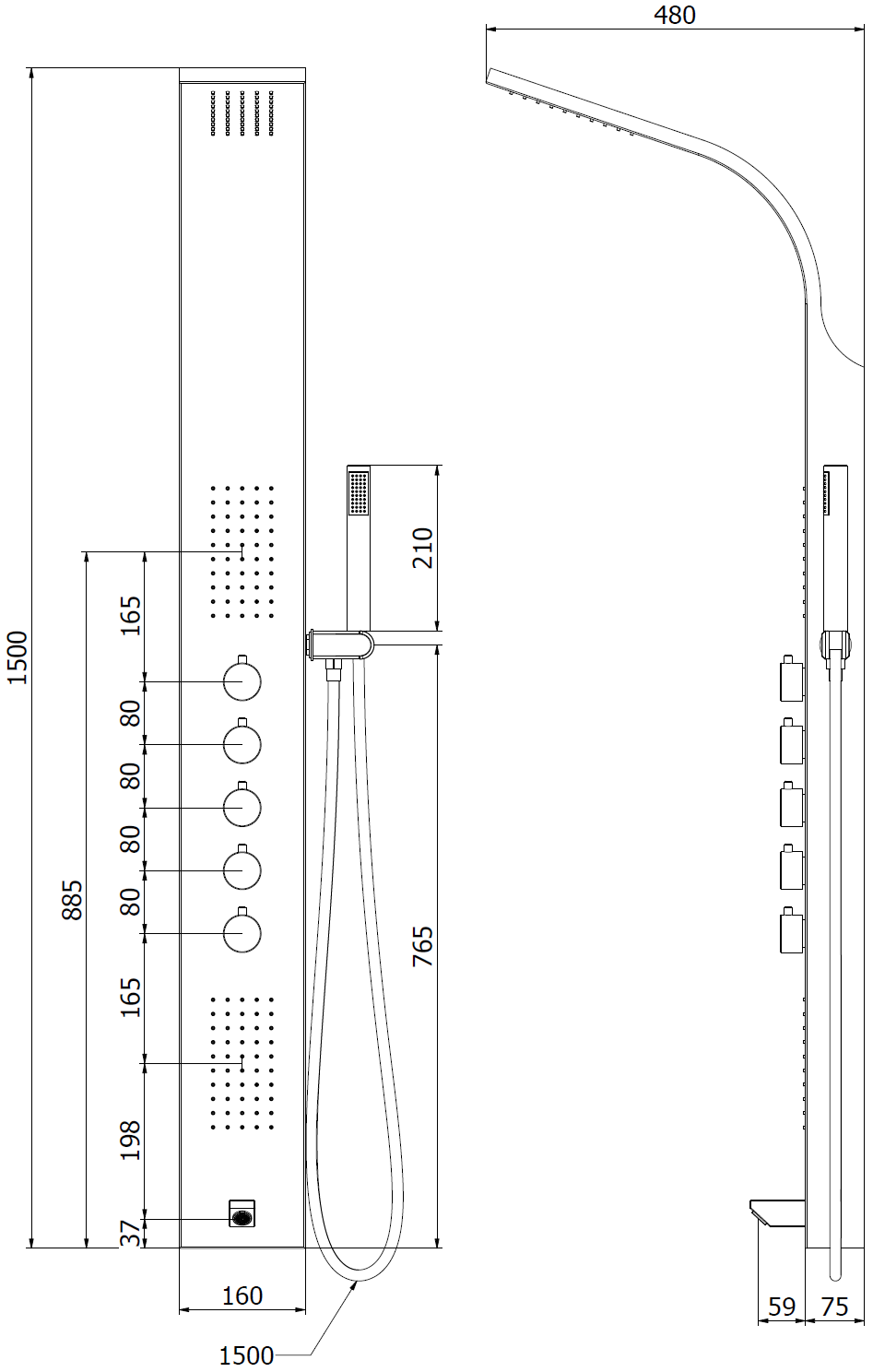 Standarden tok vode, ki posnema naravni dež. Kapljice enakomerno tečejo po telesu, ovijajoč ga s prijetnim občutkom vlaženja in omogočajo, da se potopite v sproščujočo in pomirjujočo izkušnjo, ki bo božala vaše čute med vsakodnevnim tuširanjem.