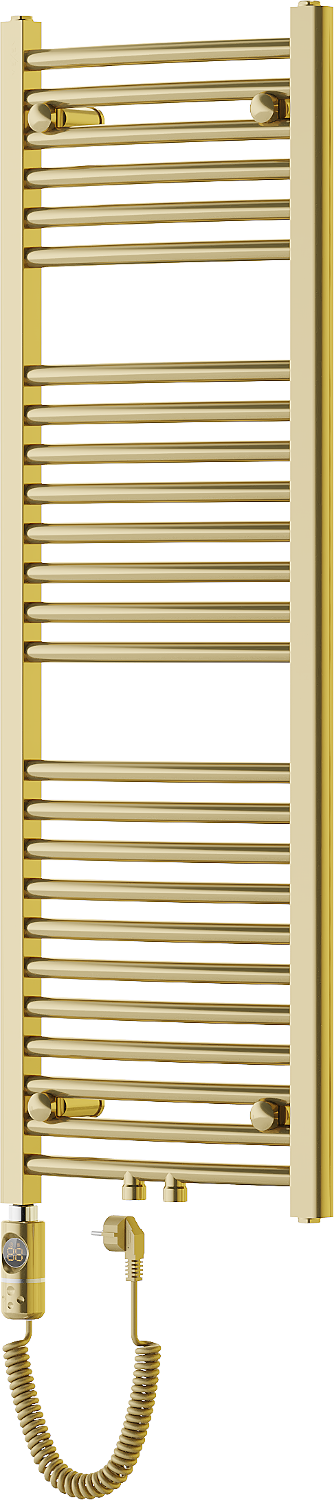 Mexen Ares je eleganten električni radiator v zlatem odtenku, ki združuje funkcionalnost in stil. Zaradi dimenzij 1200 x 400 mm in moči 300 W je idealen za prostore, kjer sta pomembna učinkovitost in dizajn. Izdelan iz trpežnega jekla, opremljen z 25 grelnimi palicami, kar zagotavlja enakomerno porazdelitev toplote. Dotik LED kontrole omogočajo nastavitev temperature v območju 40°C-65°C. S funkcijami sušenja in starševsko ključavnico je Mexen Ares odlična izbira za sodobne notranjosti.