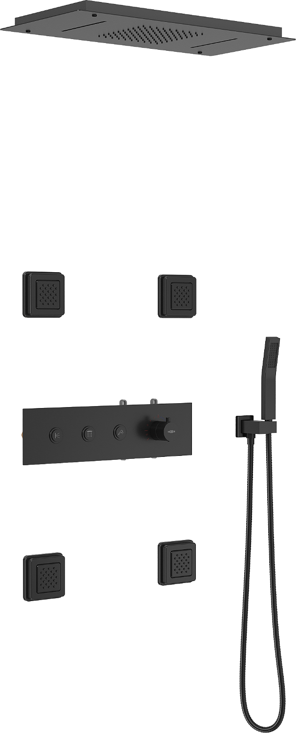 Standarden tok vode, ki posnema naravni dež. Kapljice enakomerno tečejo po telesu, ovijajoč ga s prijetnim občutkom vlaženja in omogočajo, da se potopite v sproščujočo in pomirjujočo izkušnjo, ki bo božala vaše čute med vsakodnevnim tuširanjem.