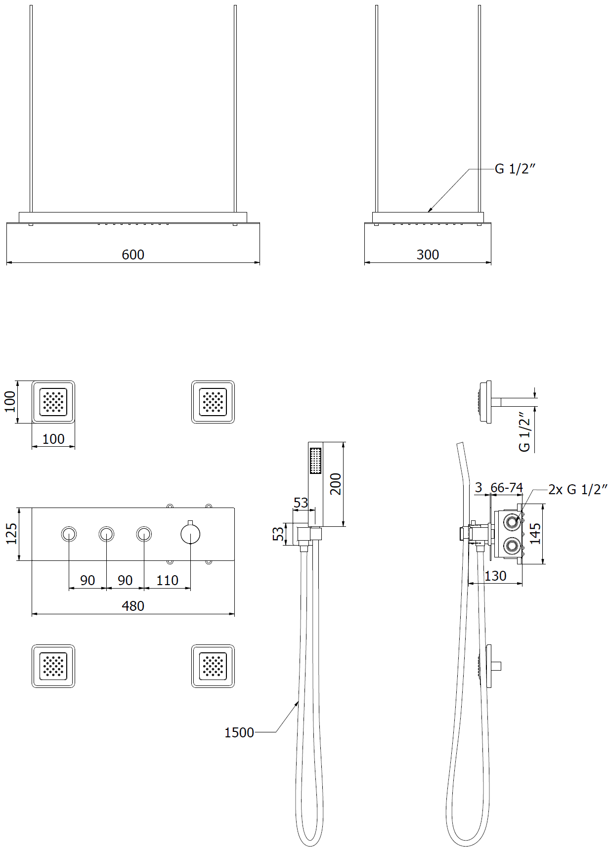 Priključek z navojem 1/2" je splošno uporabljan standardni element v notranjih vodovodnih instalacijah. Zahvaljujoč temu je priključitev in montaža naslednjih delov tuša veliko lažja in bolj intuitivna.